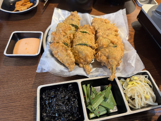 안에 고기가 채워진 고추 튀김이었군! 가격 납득입니다.
