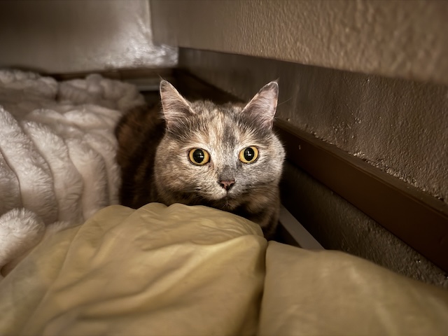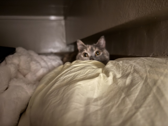 여지껏 침대서 자고 있었으면서 집사가 자려고 올라가니 놀아달라고 밑에서 냥냥