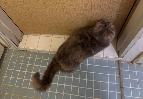 청개구리 냥이 율무 문을 살짝 닫으면 낚여서 열고 들어옵니다.