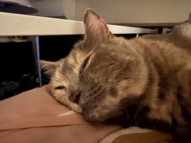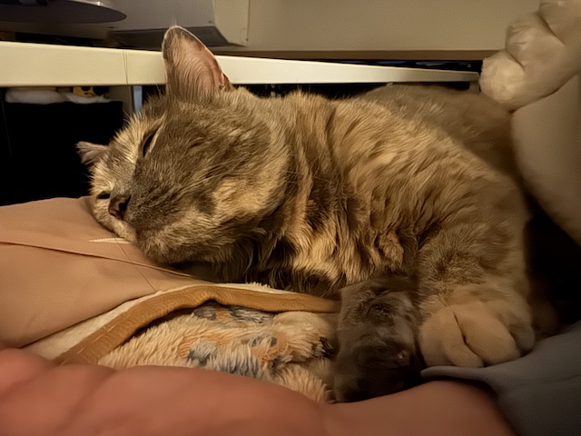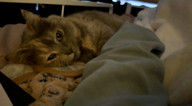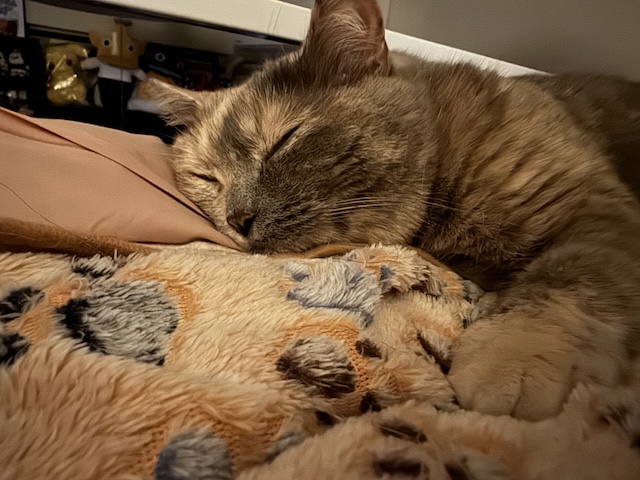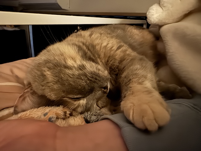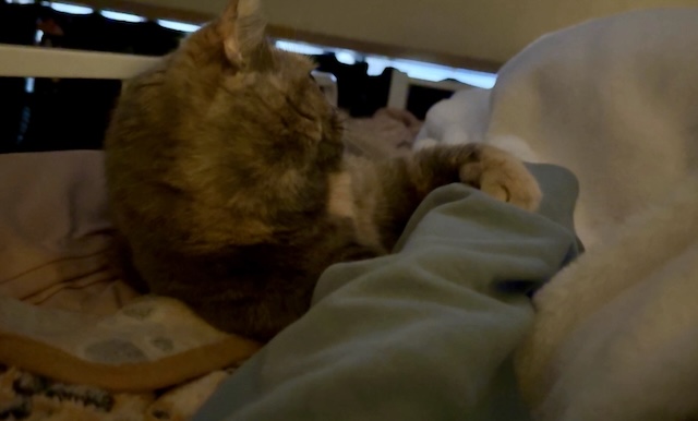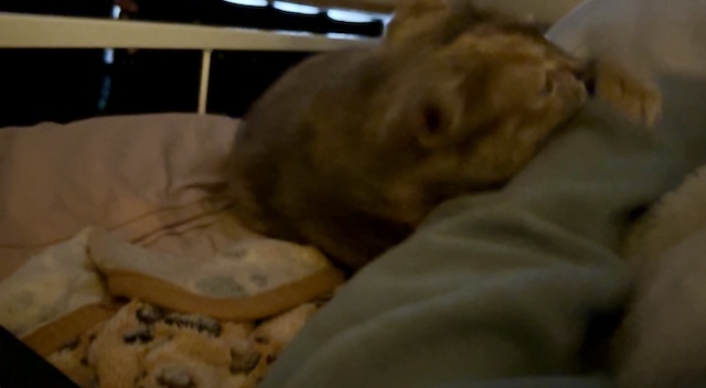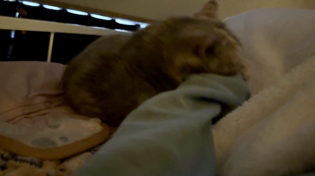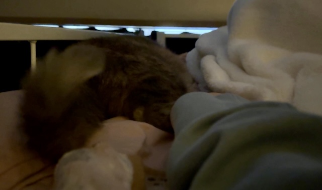 요즘엔 보통 집사 발쪽에서 잠을 자는데, 슬금 슬금 올라와서 아침에 깰 때는 옆에 있는 경우가 있는데..
