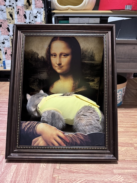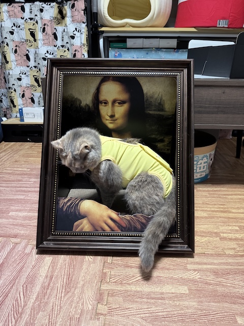 수술 후 지친 율무를 달래준 공간이 집사의 무릎이 아니라 모나리자의 품속이라 씁쓸했지만