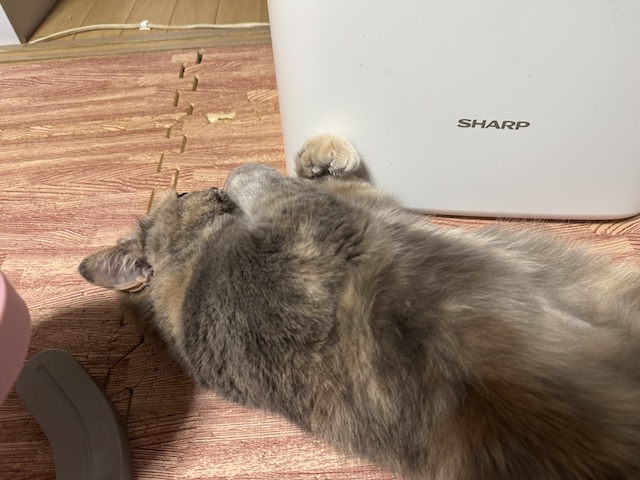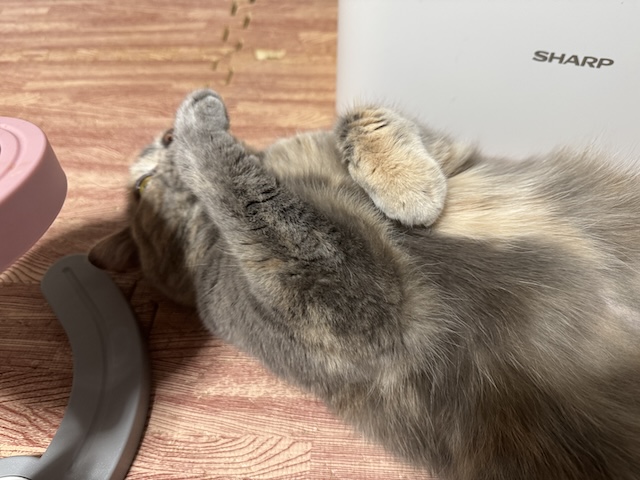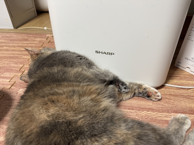 율무는 공기 청정기 옆에 붙어서 꿀잠 중