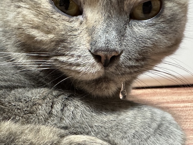 침은 결국 떨어졌네요 ㅋㅋ 잘 안 보이는데 바닥에 작은 물방울이 있습니다.