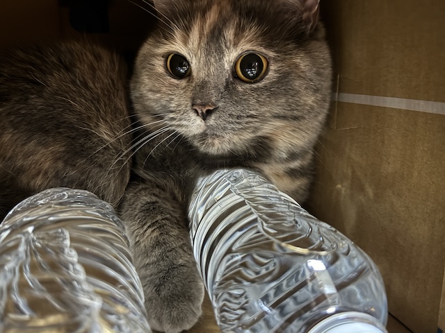 당당 냥이 율무. 율무는 이렇게 옆쪽이 트인 박스를 더 좋아하는 것 같습니다.