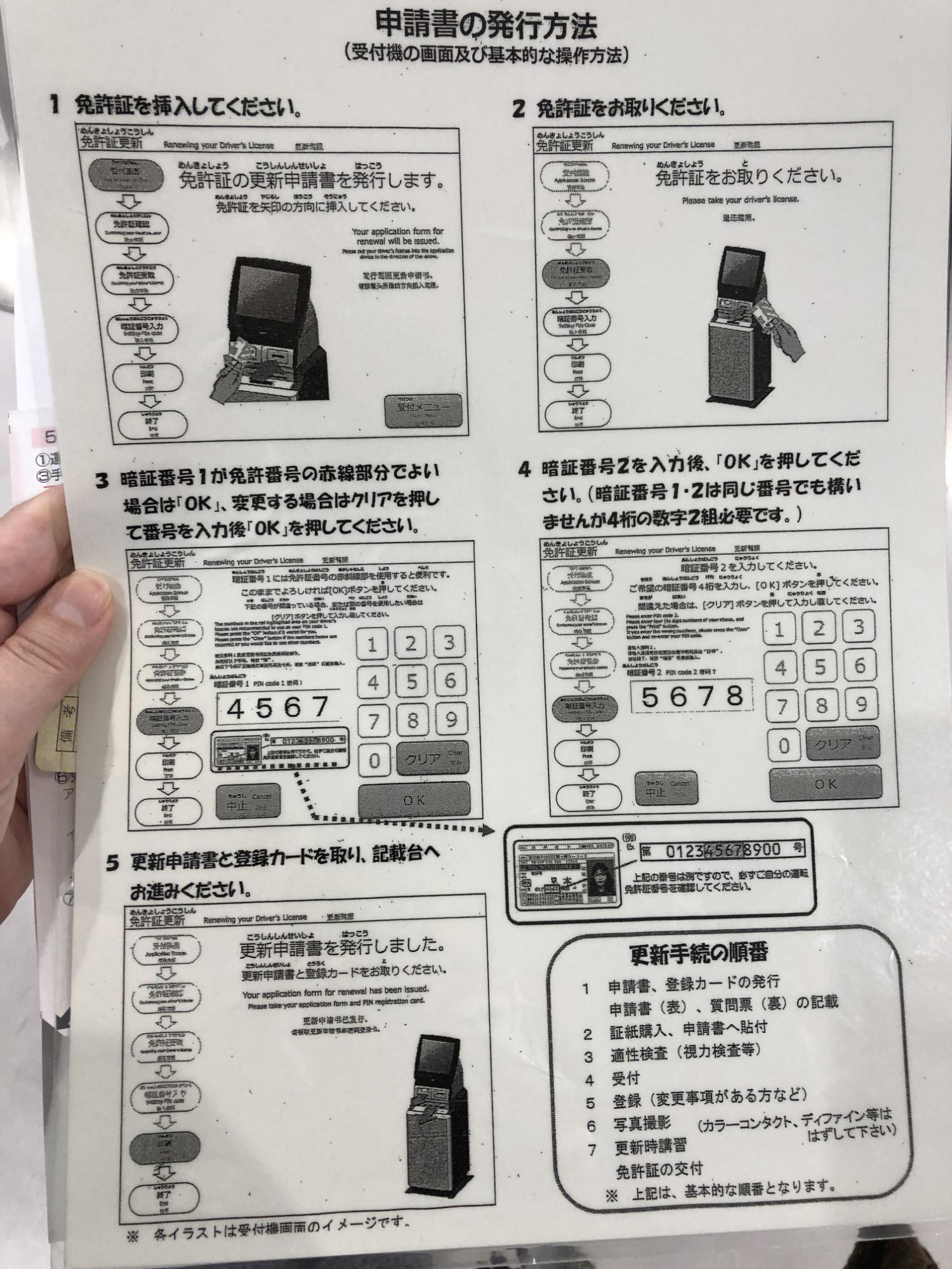 사진도 찍어주니 필요한건 갱신하라는 안내 엽서, 운전면허증, 재류카드와 갱신료.
