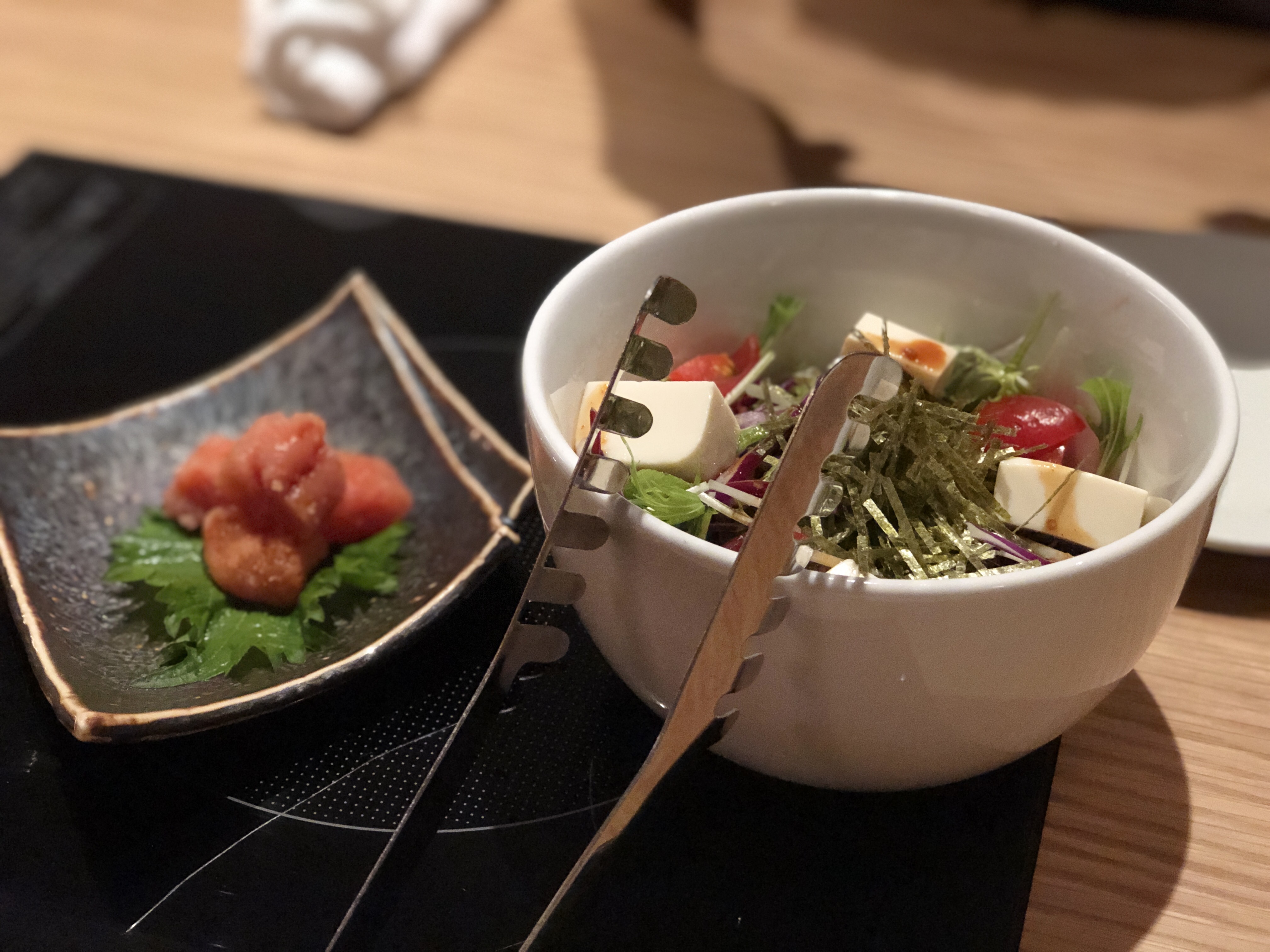 그담은 샐러드랑 명란 젓- 흰 밥이 땡교-