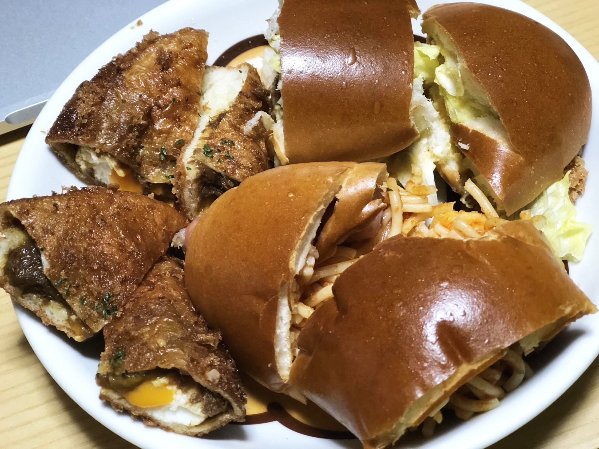 삶은 계란 들어간 고로게, 나폴리탄+소세지 들어간 빵, 새우튀김+삶은 계란 부신 아이 들어간 빵!