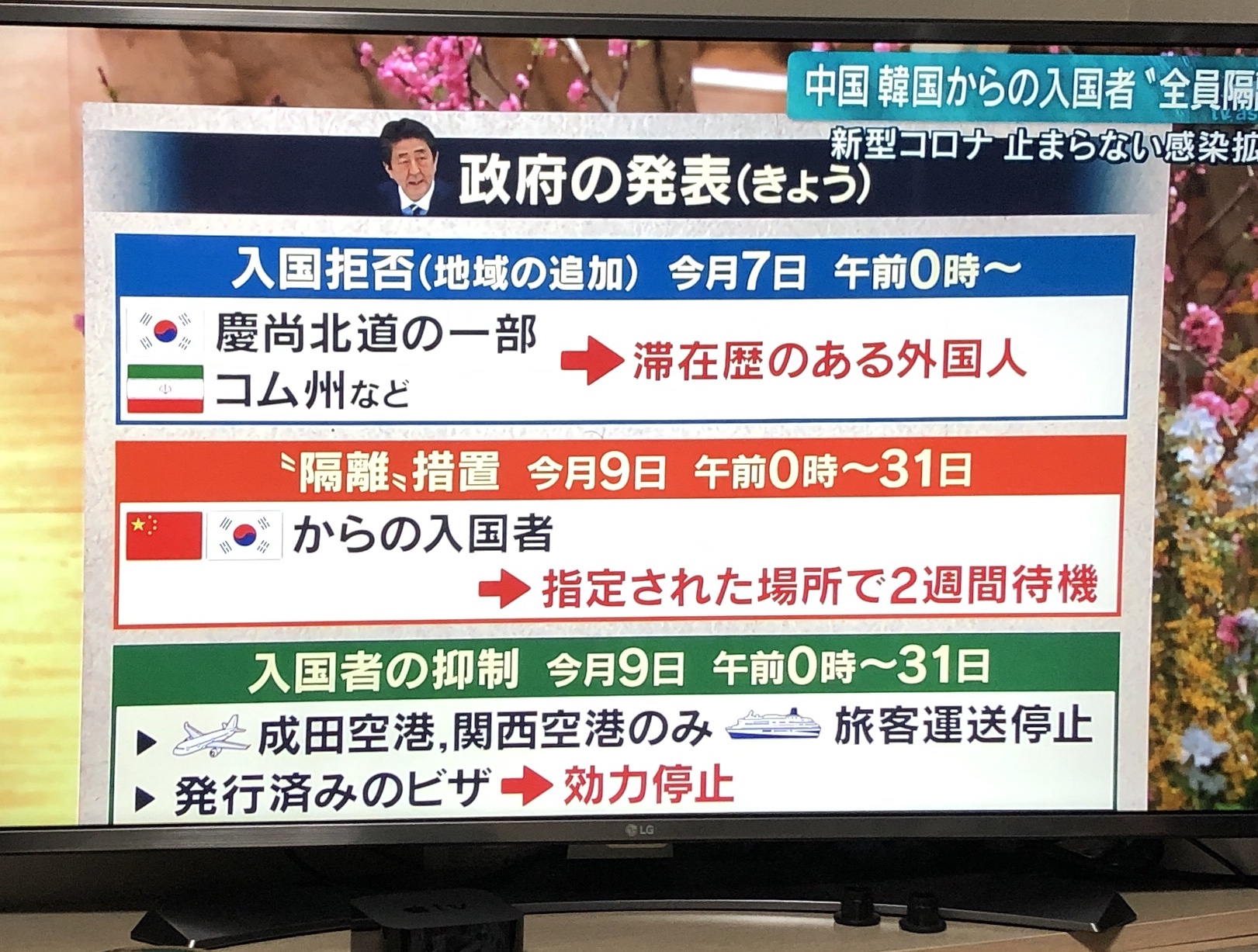 입국자 제한 (9일-31일) 나리타, 관서공항으로만 입국 가능, 여객 운송 중지/ 발행 완료 비자>효력 중지