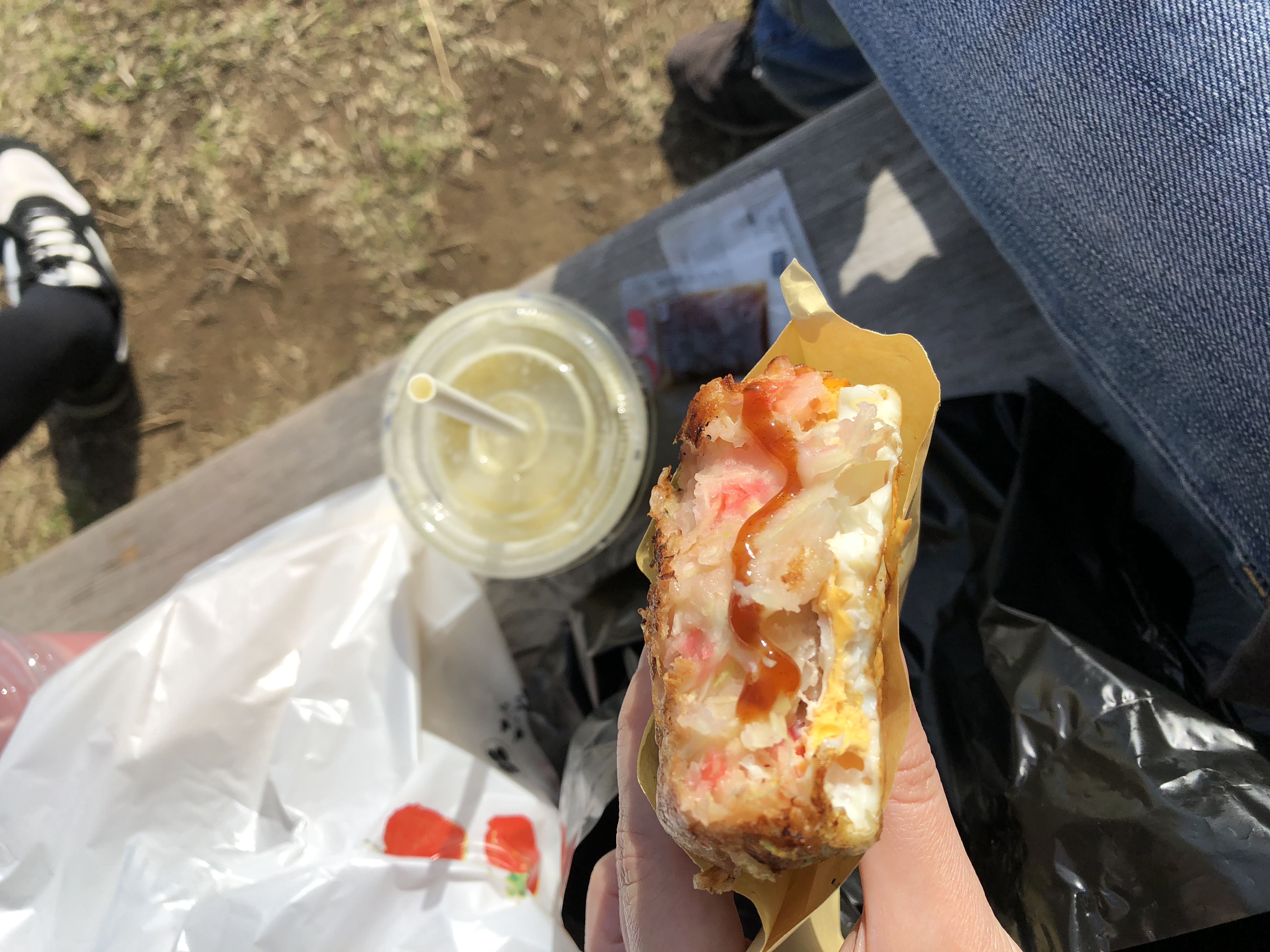 도착해서 가게들 스캔& 구매 후, 먹방하러 옆 공원 고고