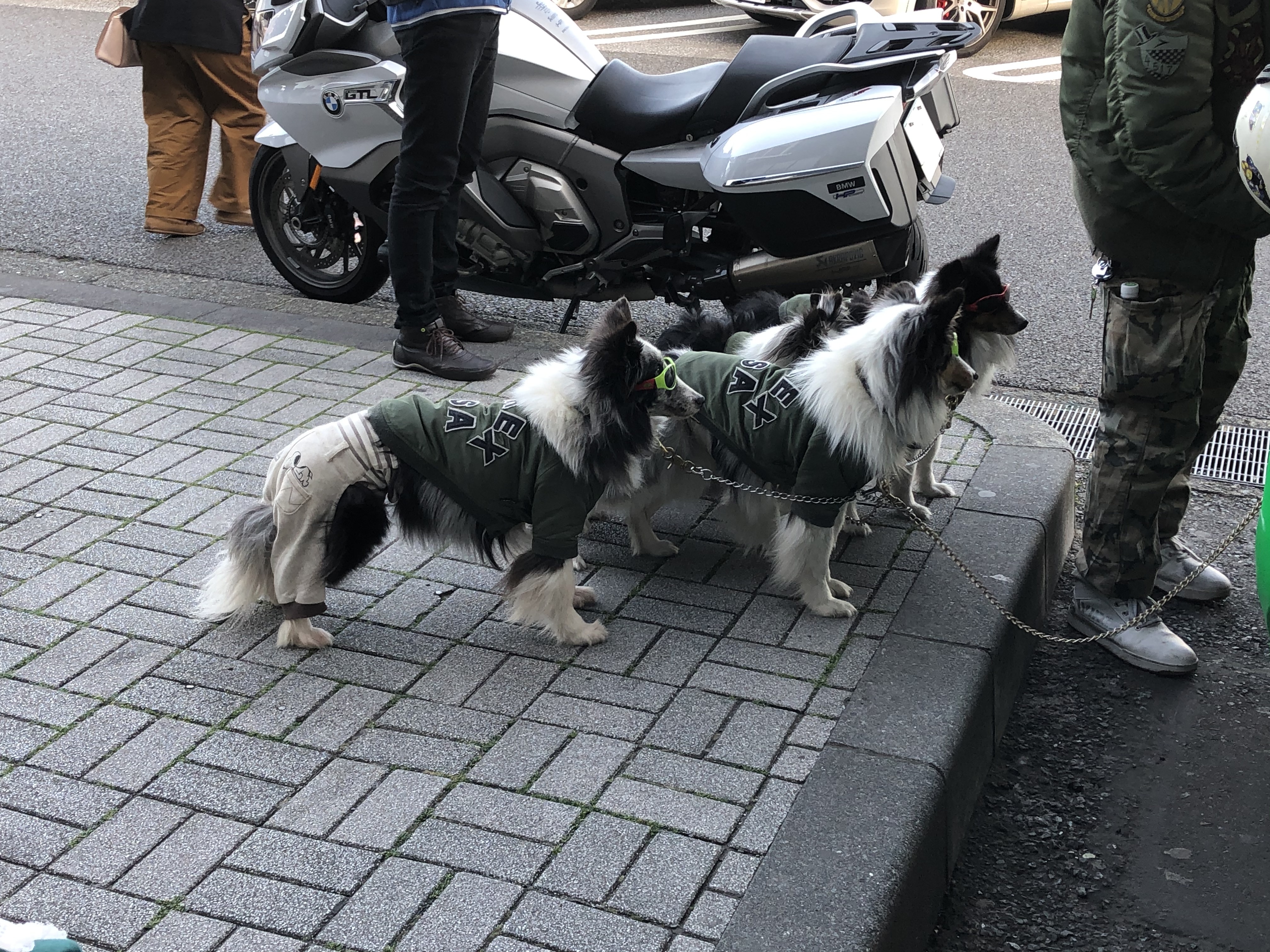 아저씨랑 깔맞춤 한 개들 ㅋㅋ 바이크가 개들도 태울 수 있게 개조되어 있었음