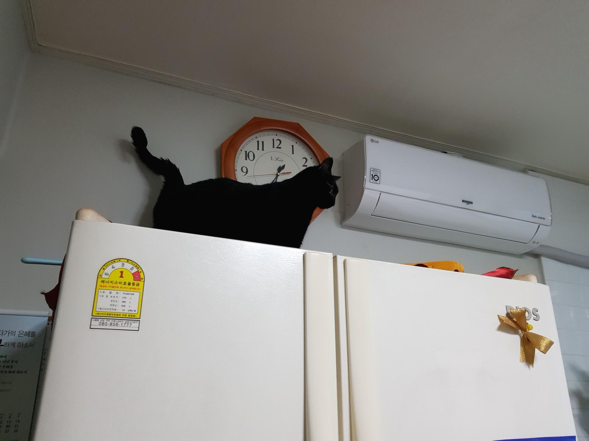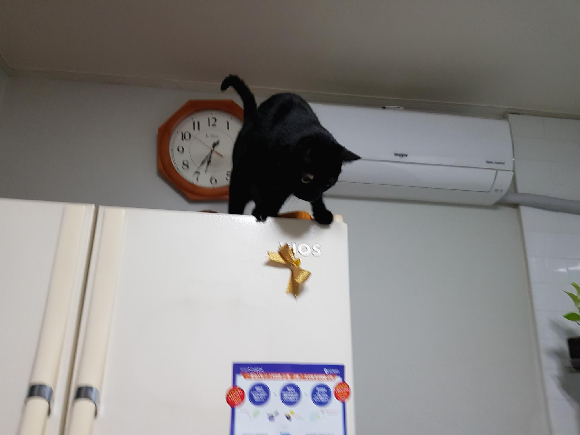만두님이 간만에 냉장고 위에 올라가 주심