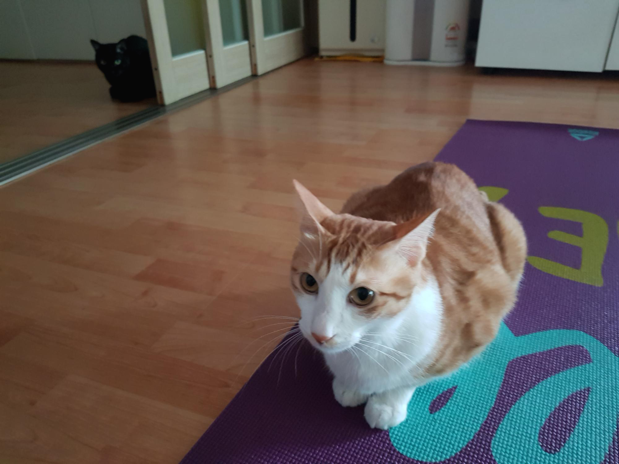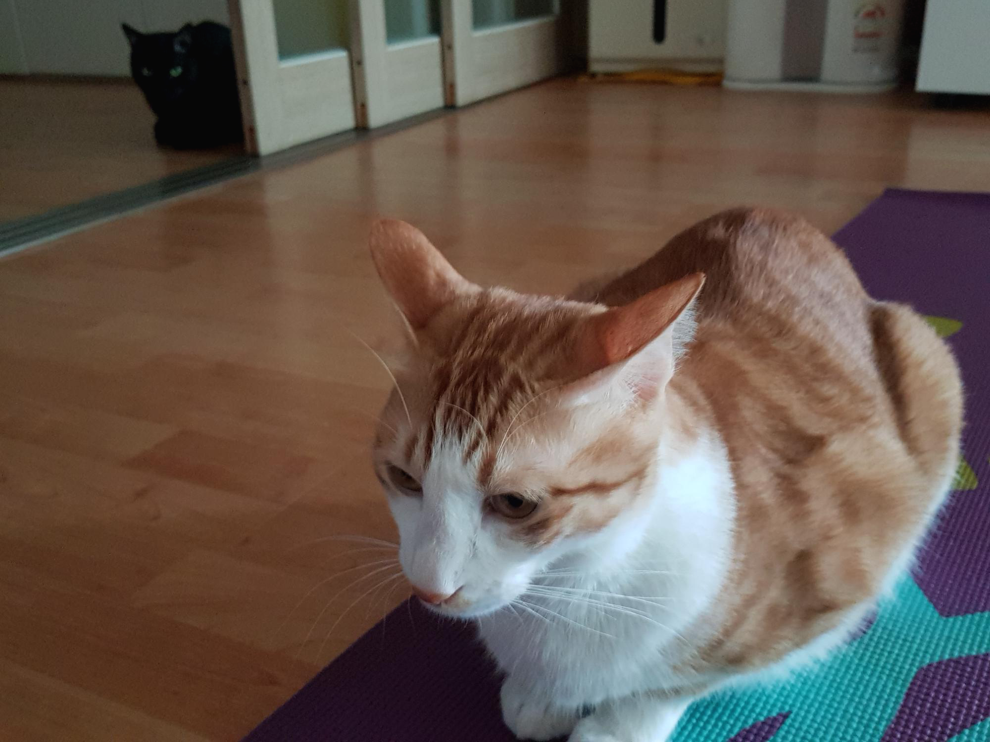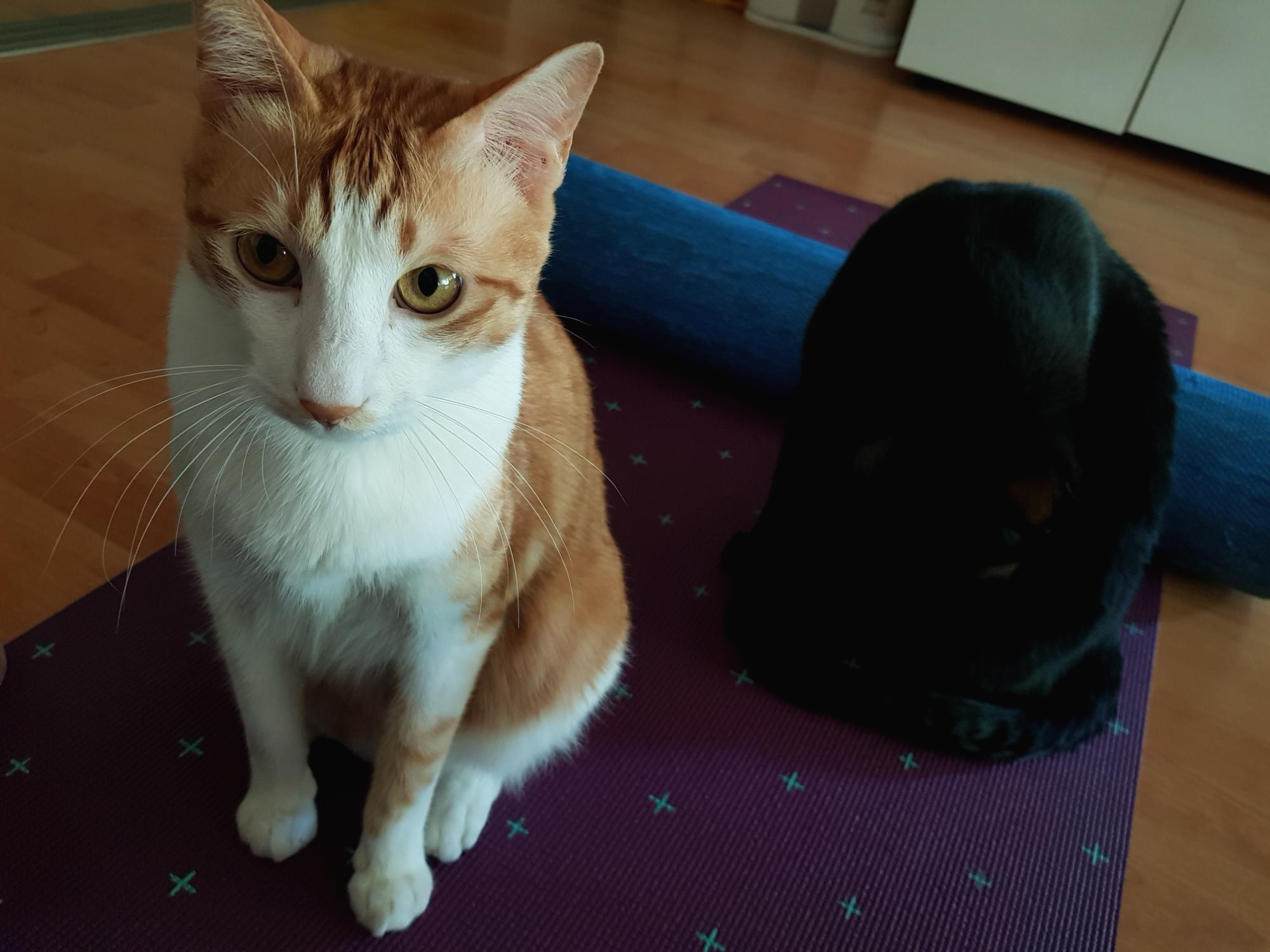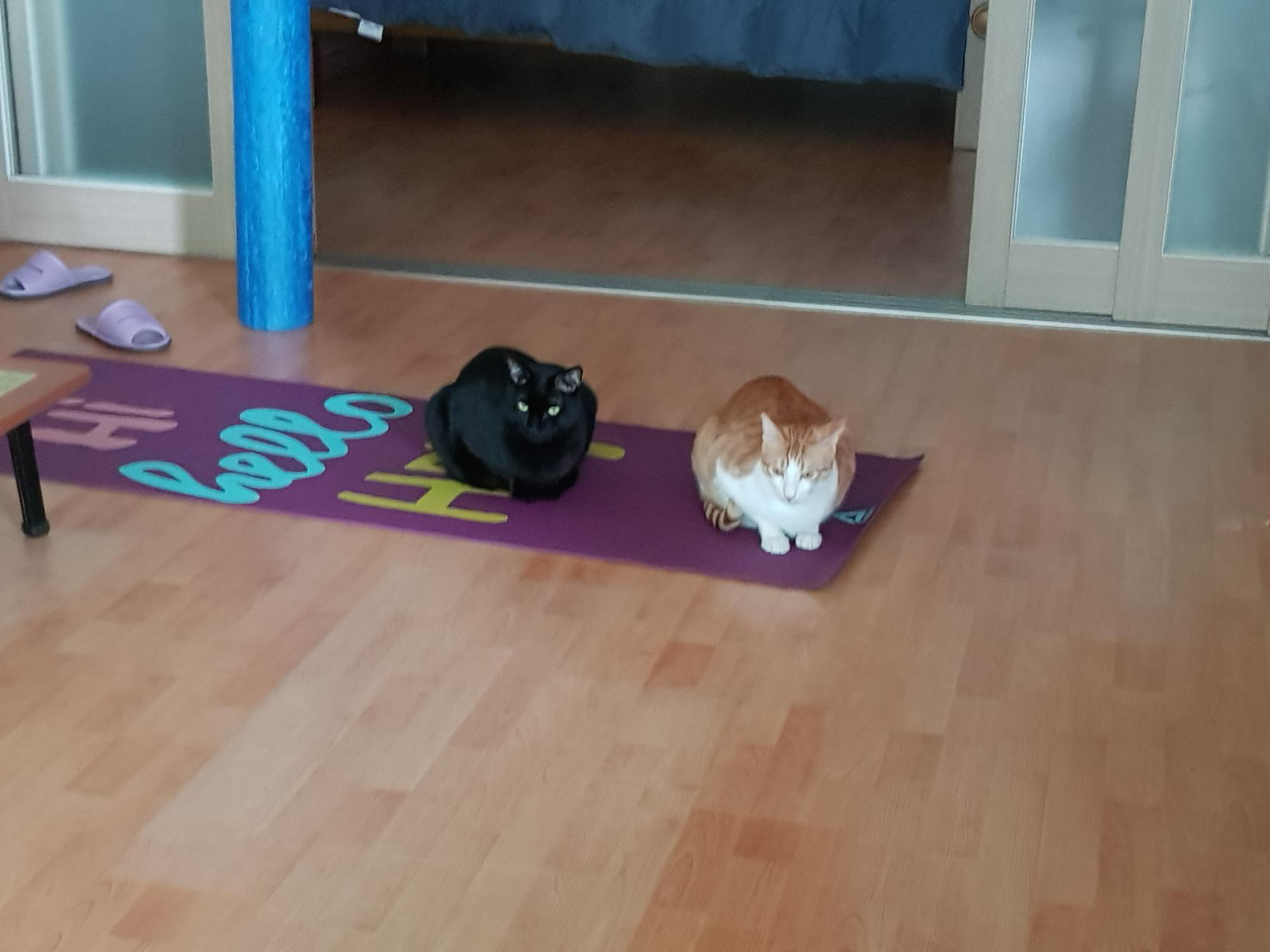 그런데.. 요가매트 냥이들이 양보해 드리니 누워 자는 집사
