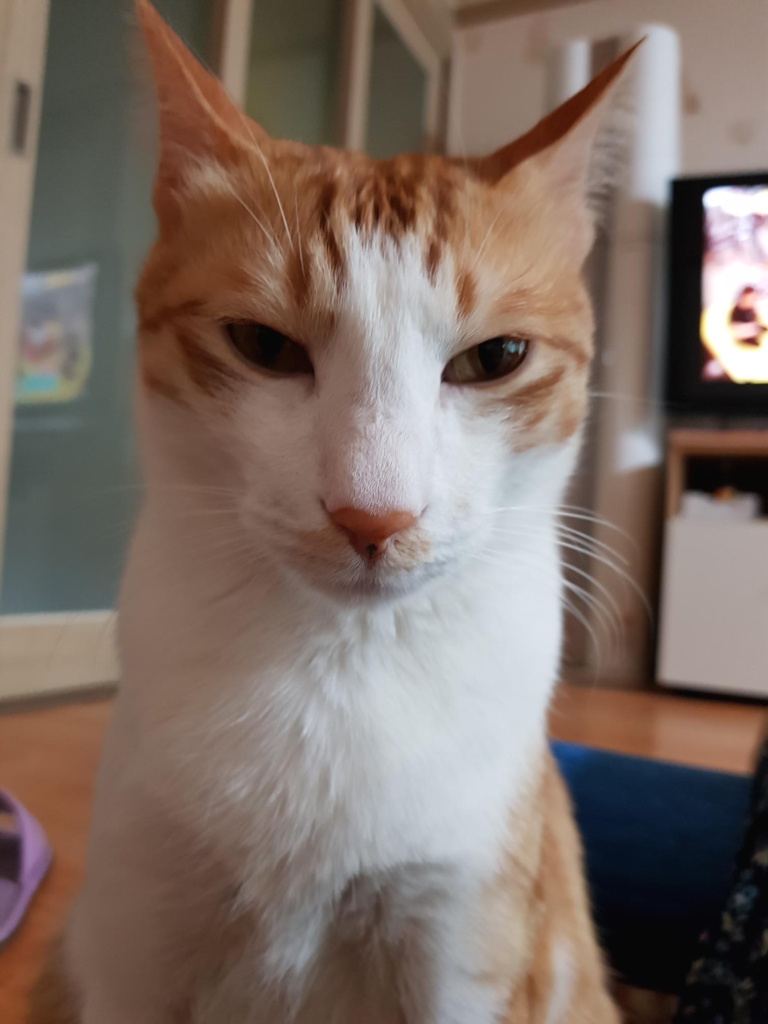 그건 간식! 졸리지만 그래도 간식이 먹고 싶다(만두도 츄르와 집사의 관심은 포기하지 않았다.)