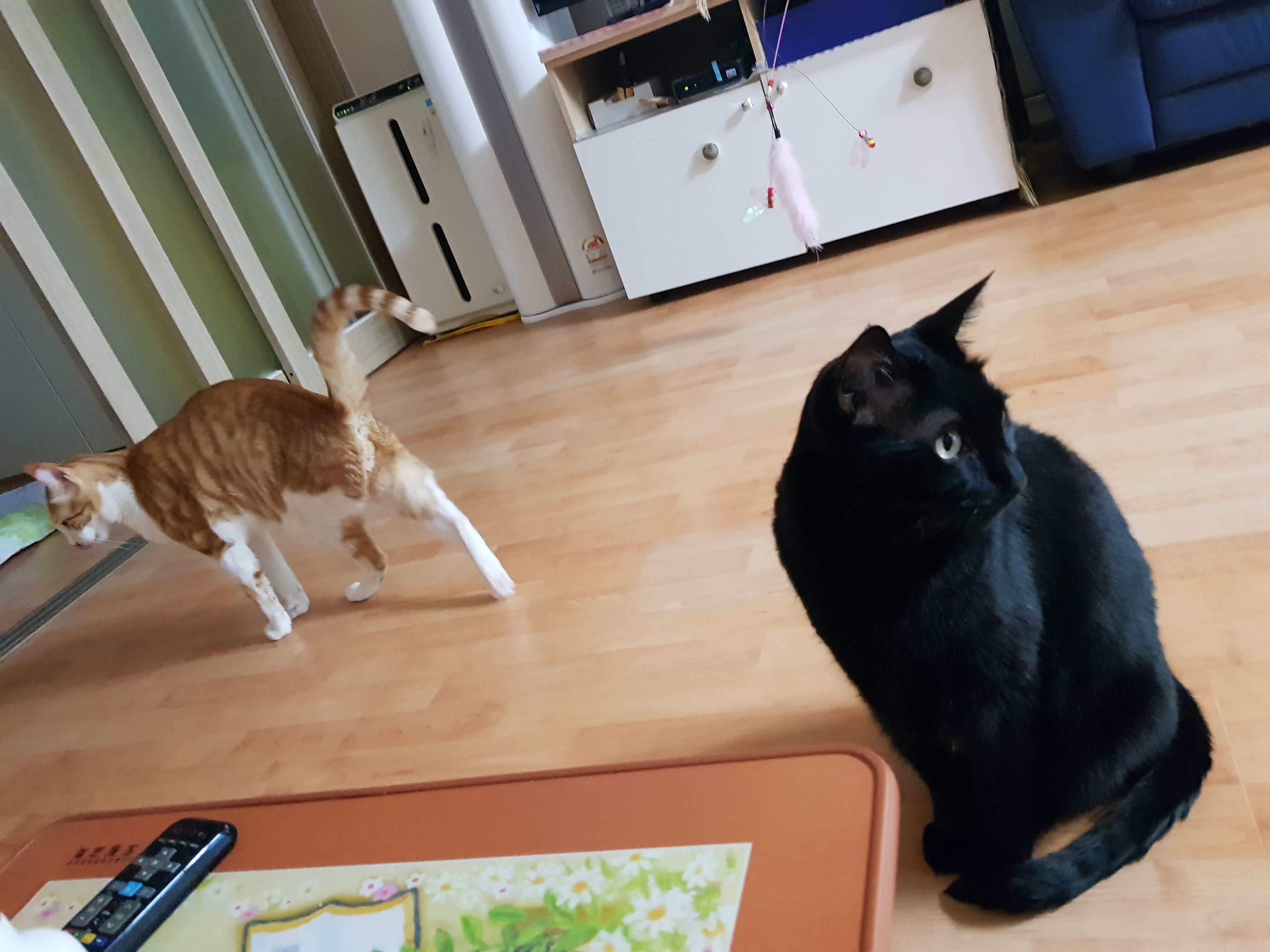 꼬리 집사에게 스윽- 하고 부들부들 ㅋㅋ 기분 좋아-