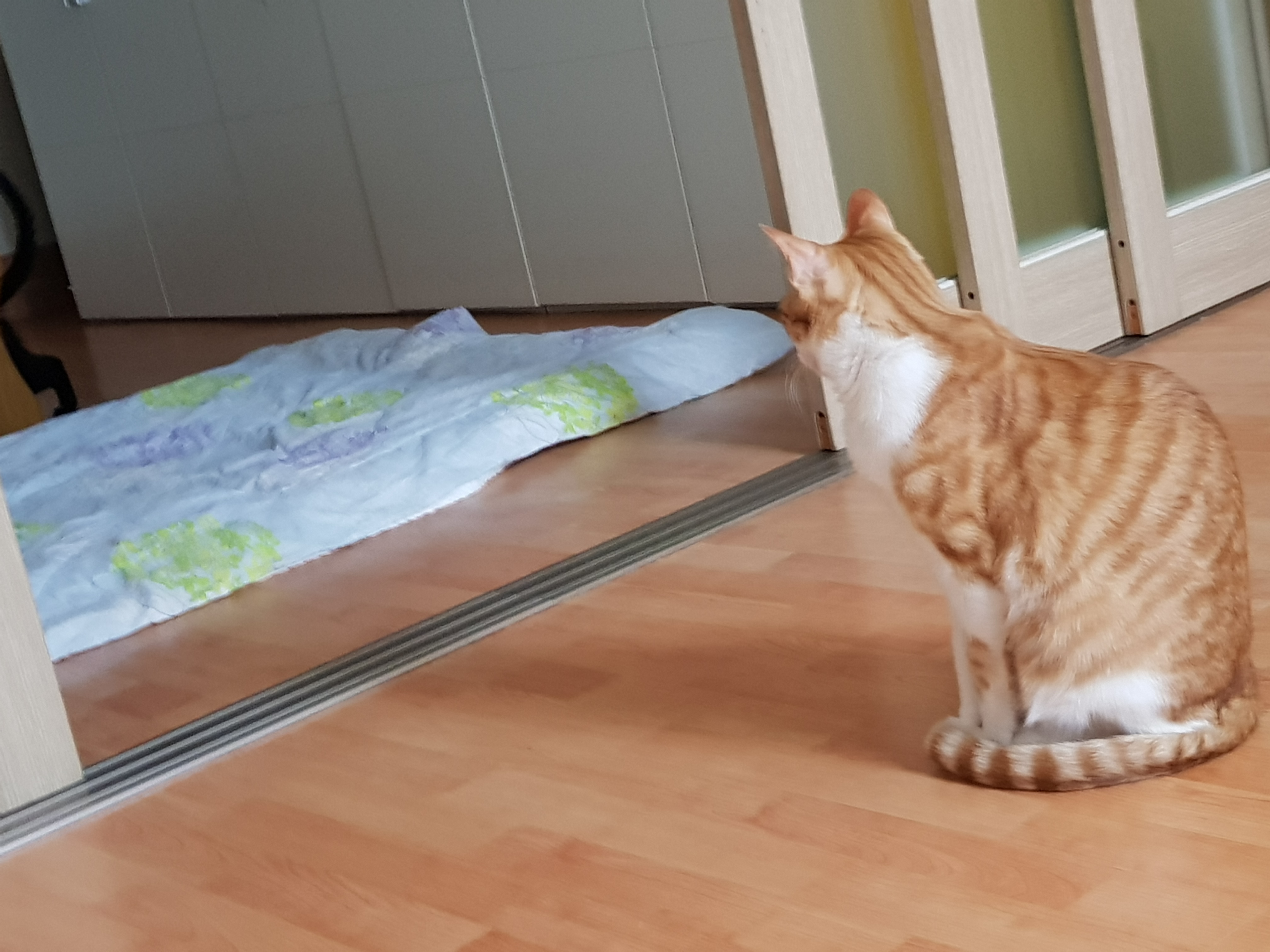 닫힌 문 바라보는 감자- 또 문이 닫혀 있으니 열고 싶은가 ?