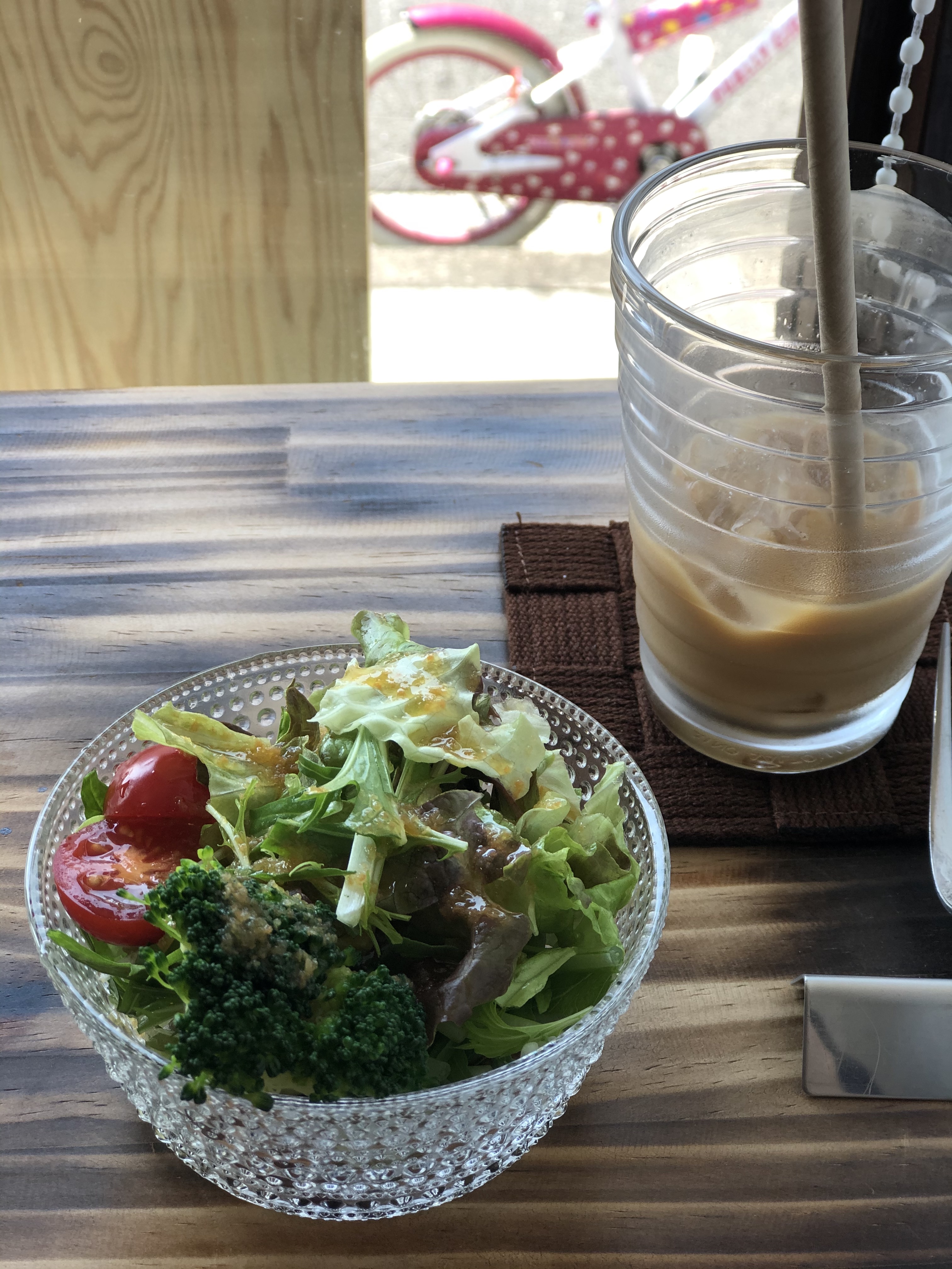 밖에 있는 아이 손님 자전거가 귀여버서 그거 배경으로 찰칵찰칵.
