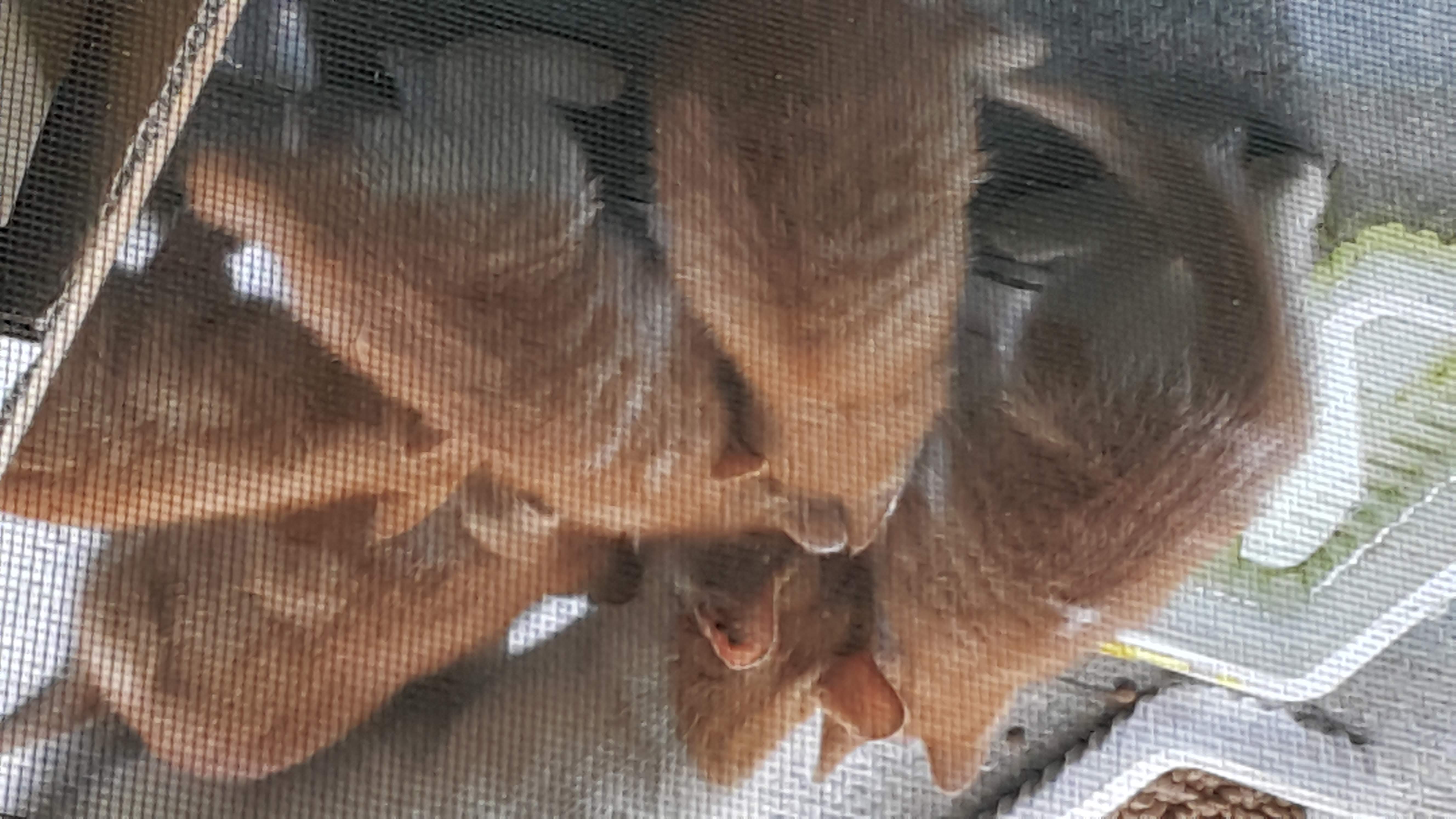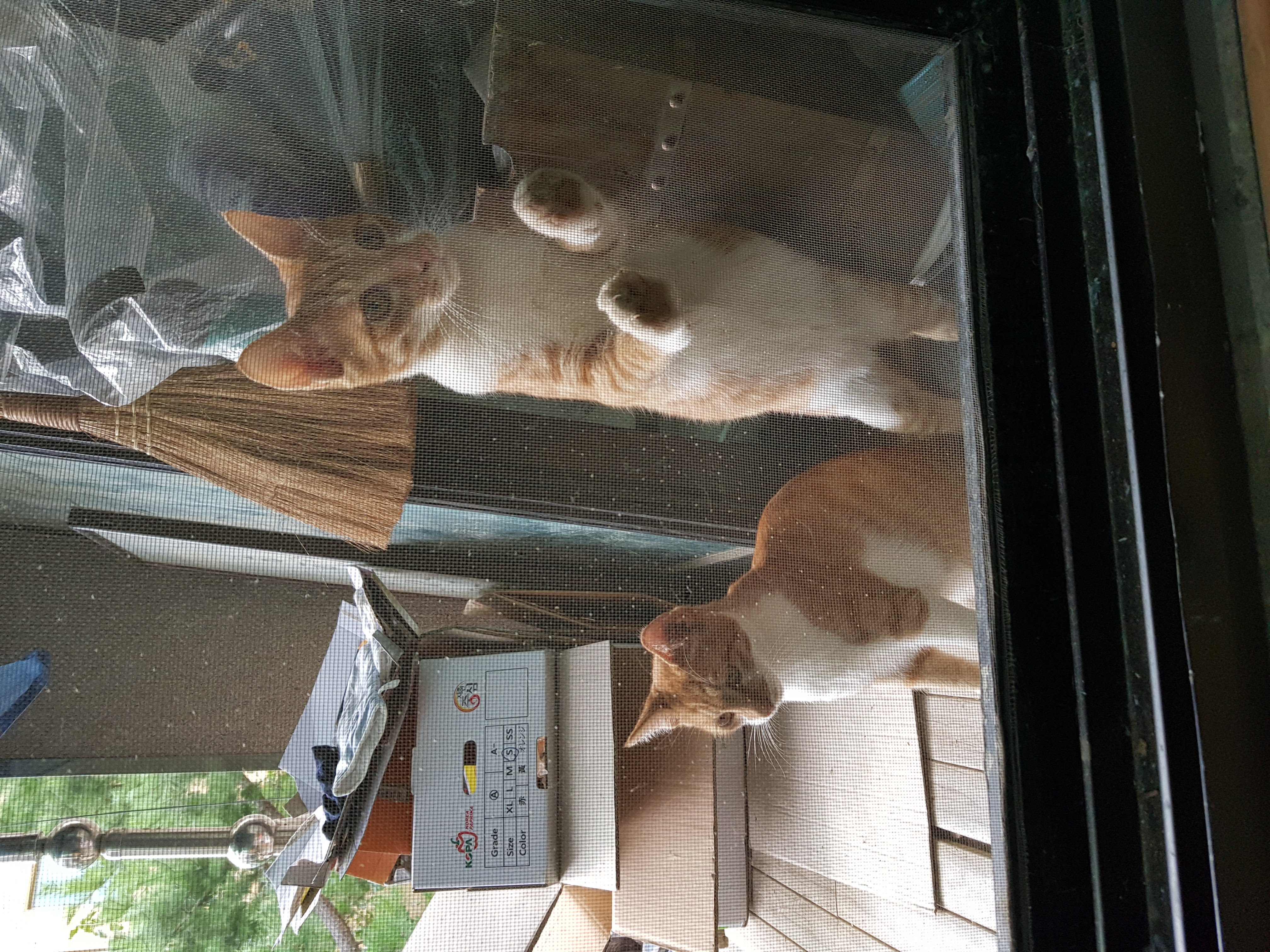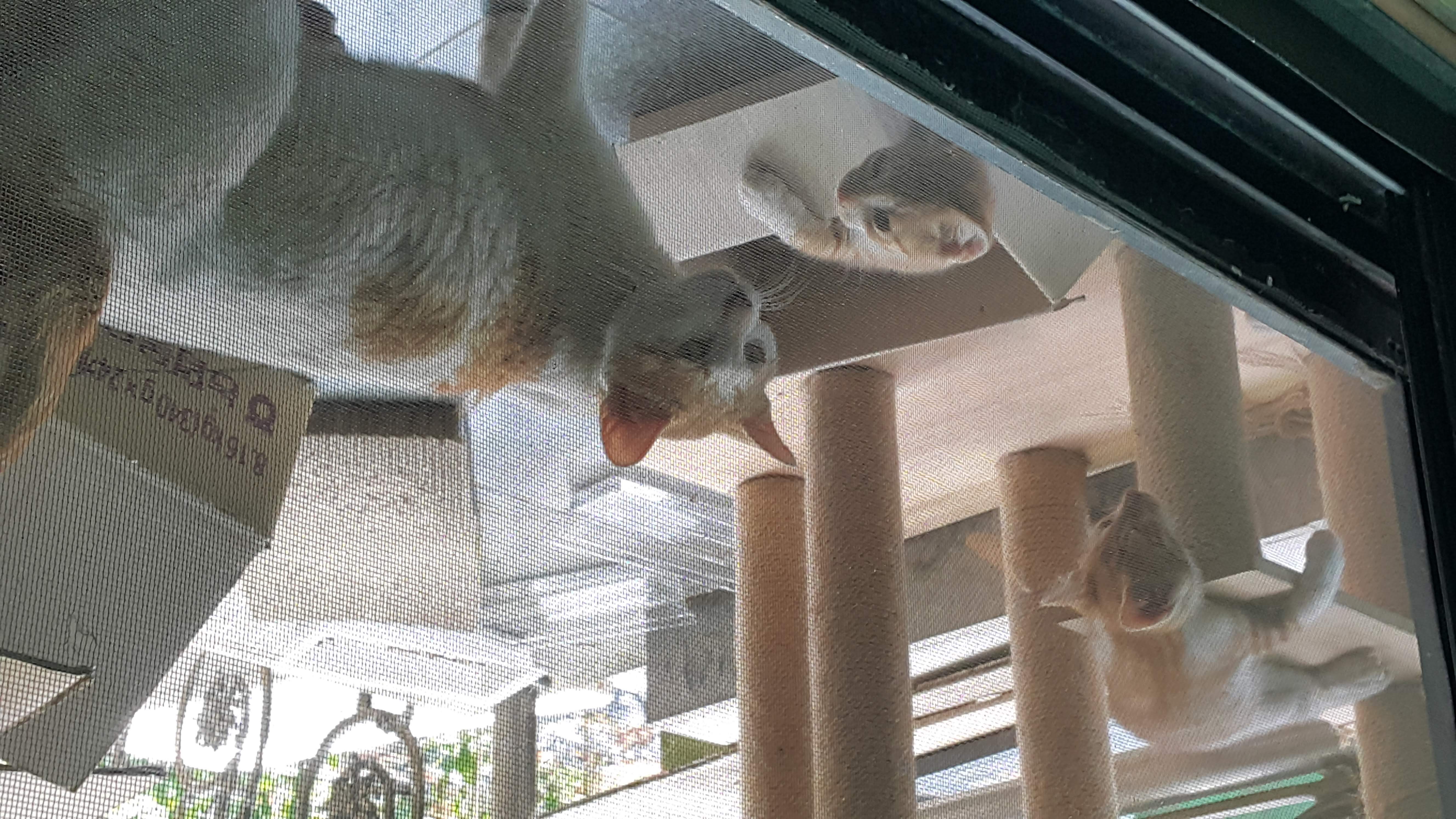 방충망 사이로 접선 중. 자네 이 문 안열어 주겠나