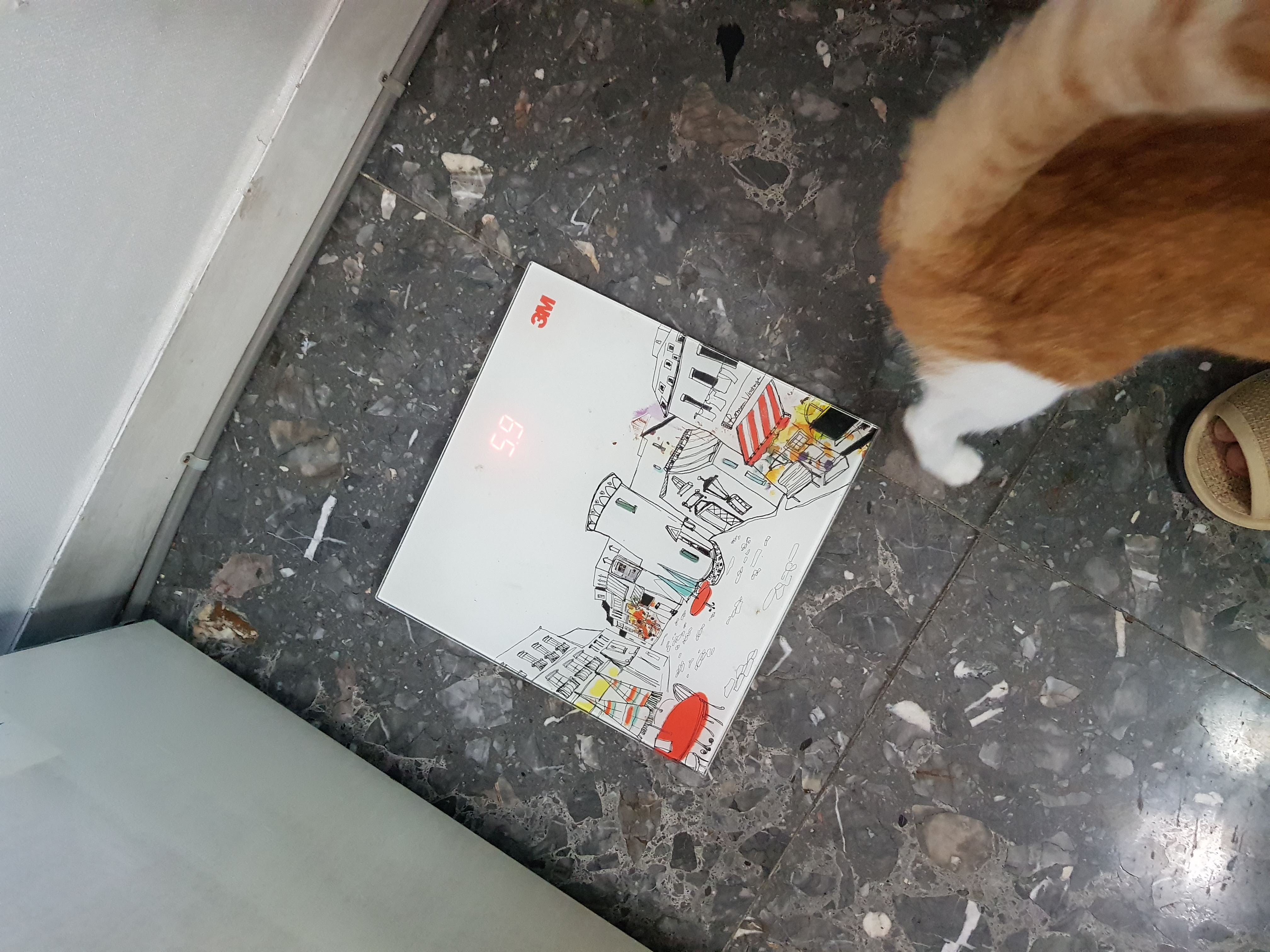 여튼 짐싸는거 찝쩍대고 돌아댕기다가 어떨결에 체중계에도 올라갔다는 그런.. ㅋㅋ