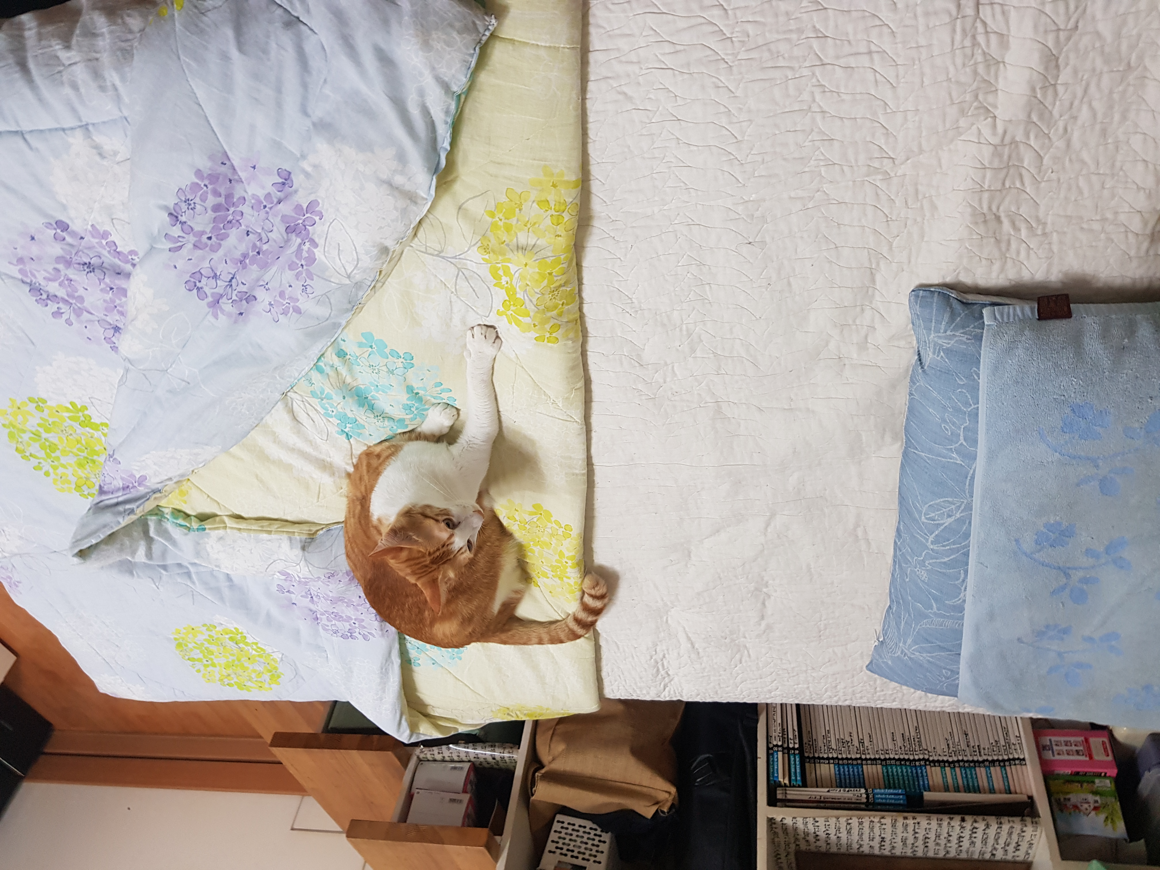 참고로 어젯 밤- 슬 자려고 하는 집사 침대 한가운데 차지중인 감자 ㅋㅋ