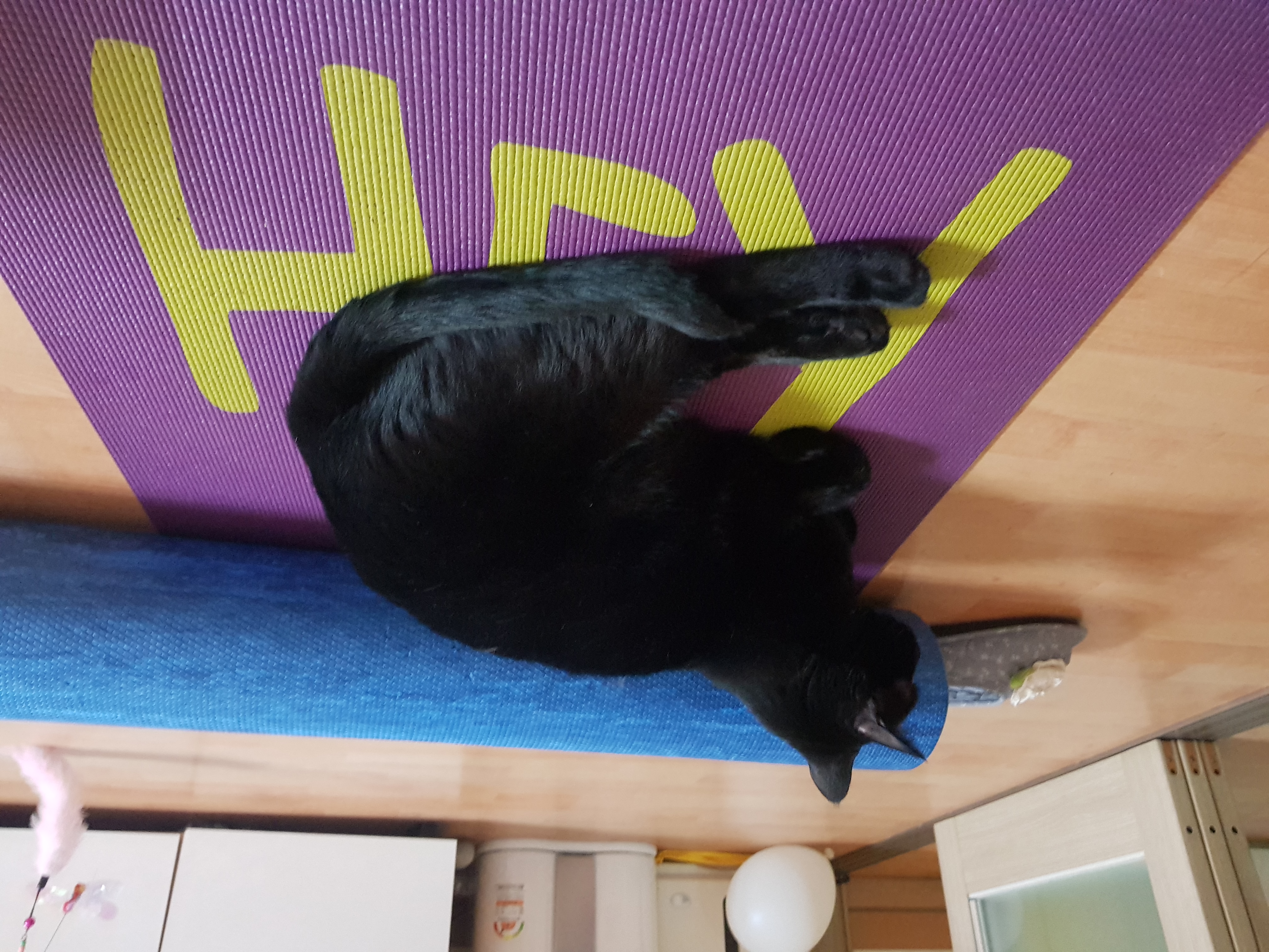 매트를 펴니 두리번 두리번 하고 자리 잡기 ㅋㅋㅋ