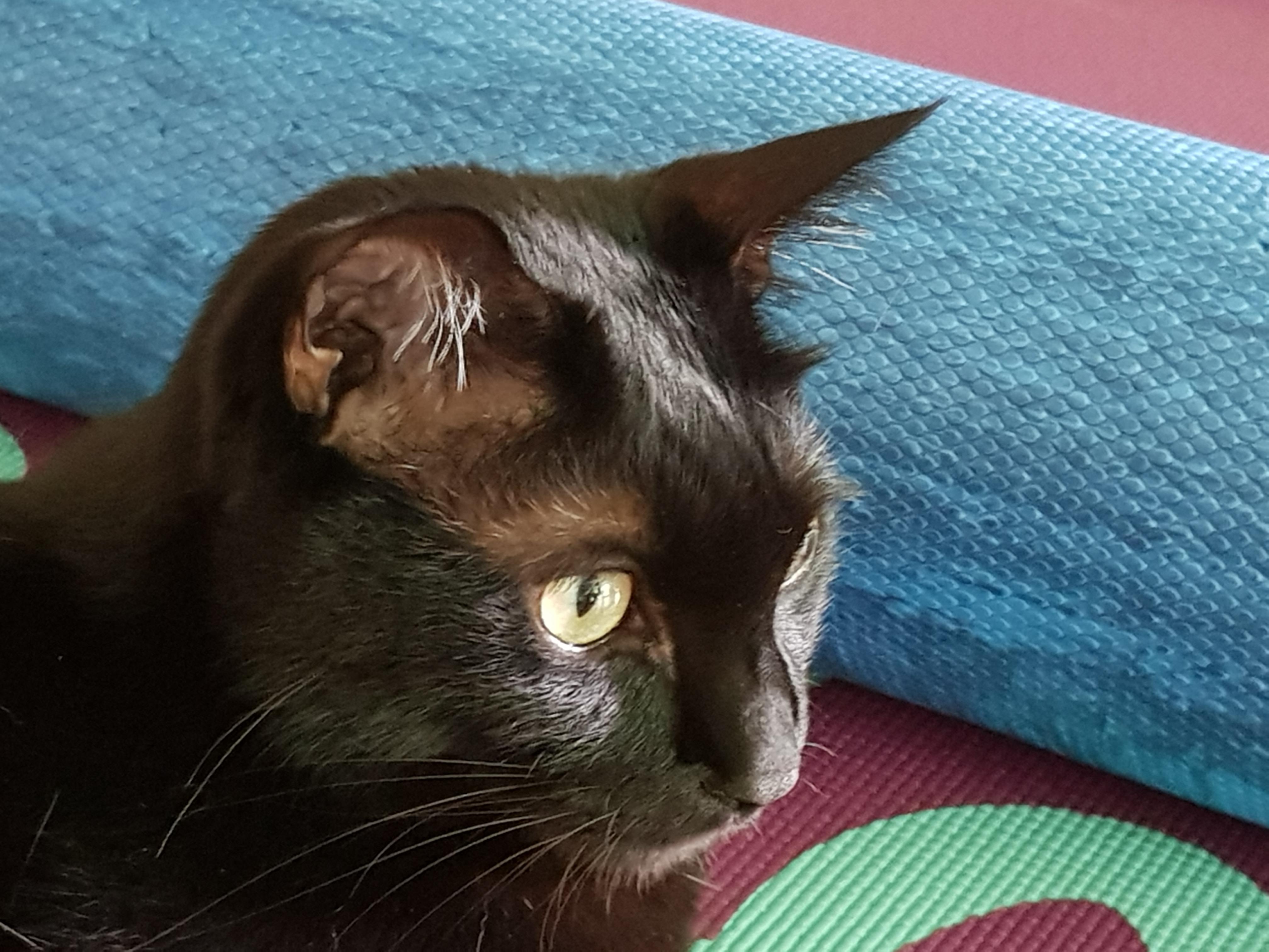 집사가 누우려고운동하려고 편 매트에 앉으심
