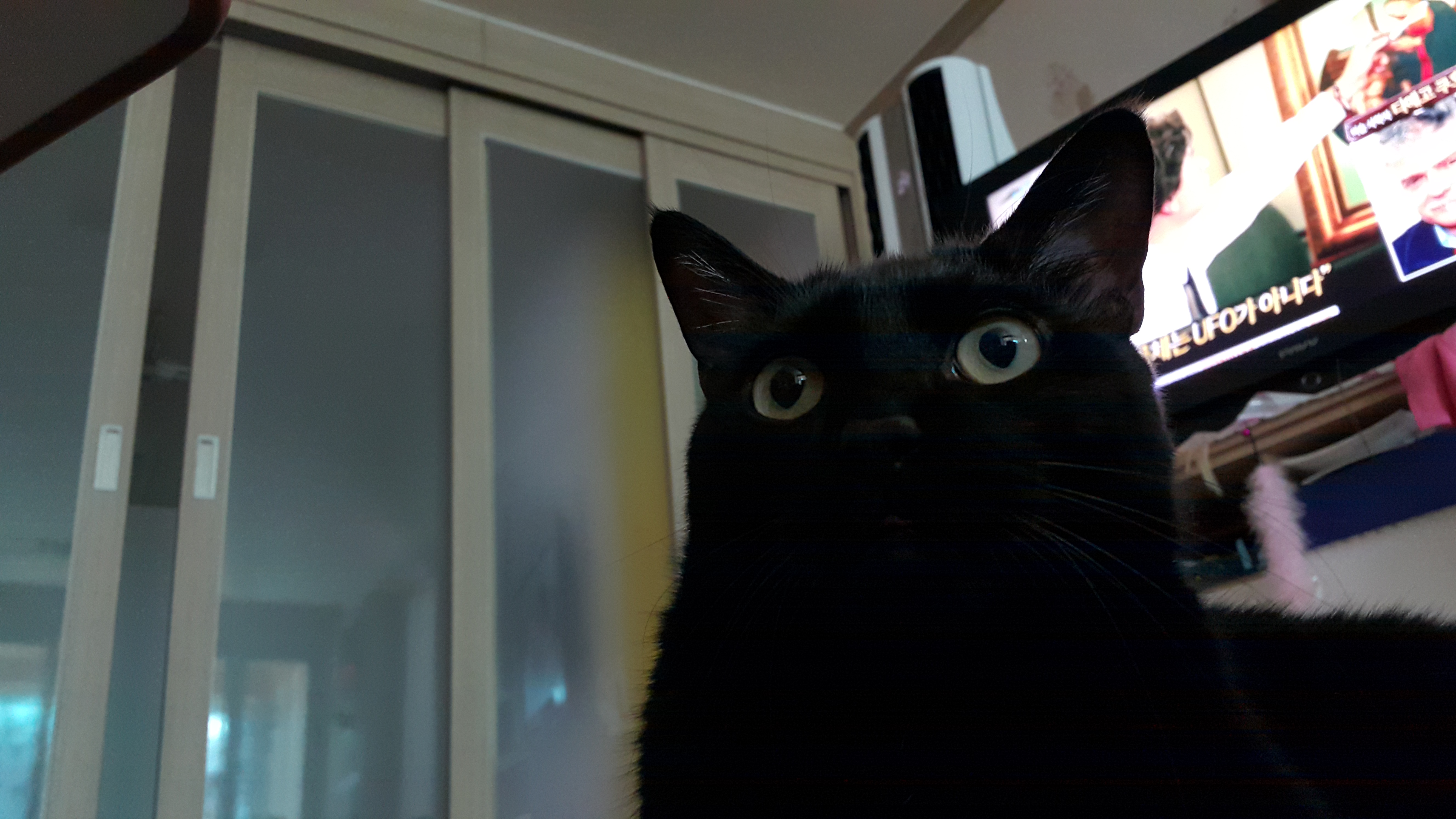 건드리면 건드리냐- 하고 눈 땡글-