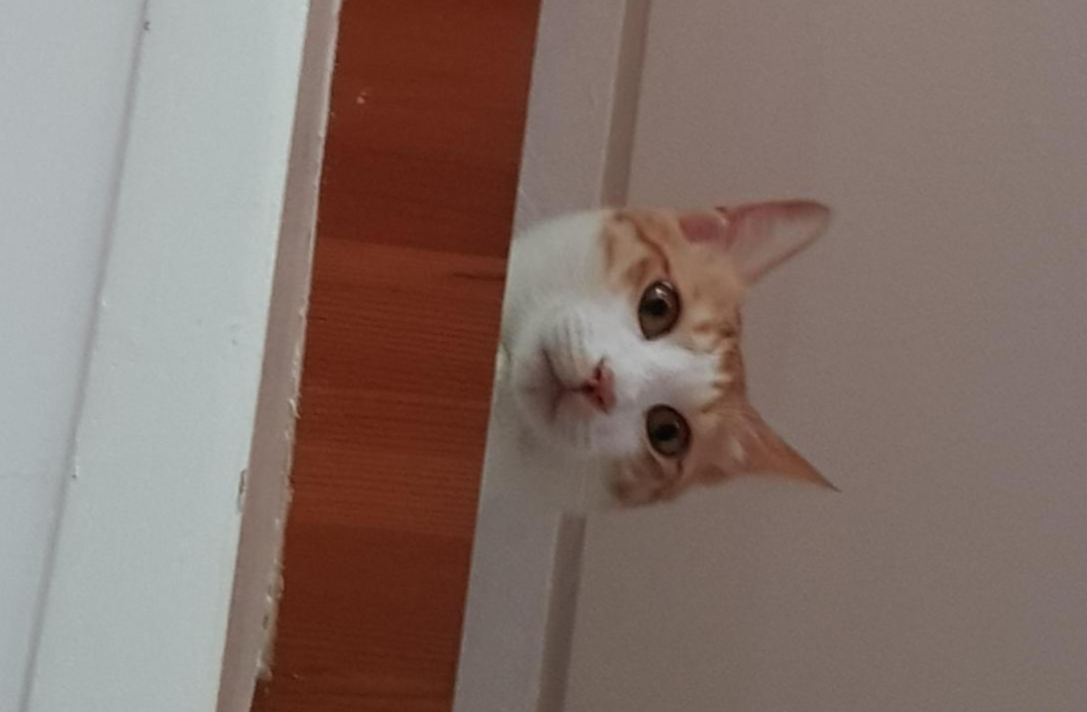 계단 위에서 고개 빼꼼- 간식 줄꺼냐