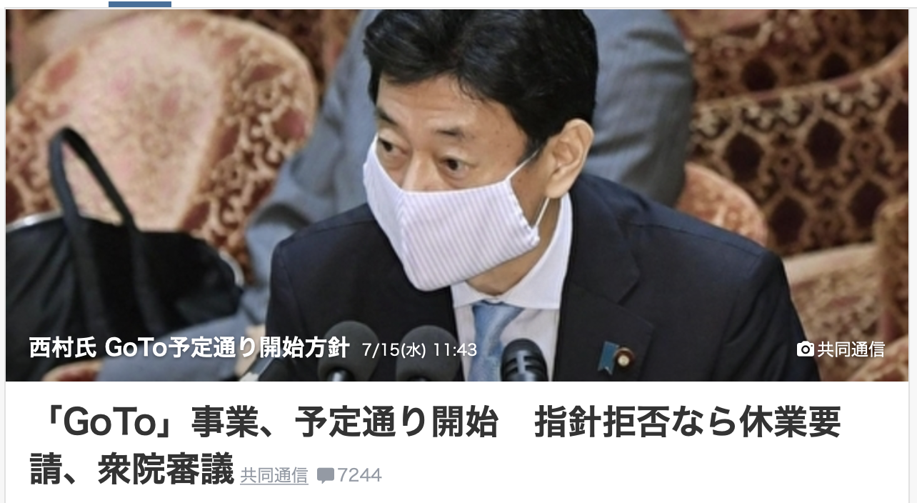 그 와중에 일본에서는 여행을 장려하는 go to 캠페인은 예정대로 22일 부터 시작한다 함.