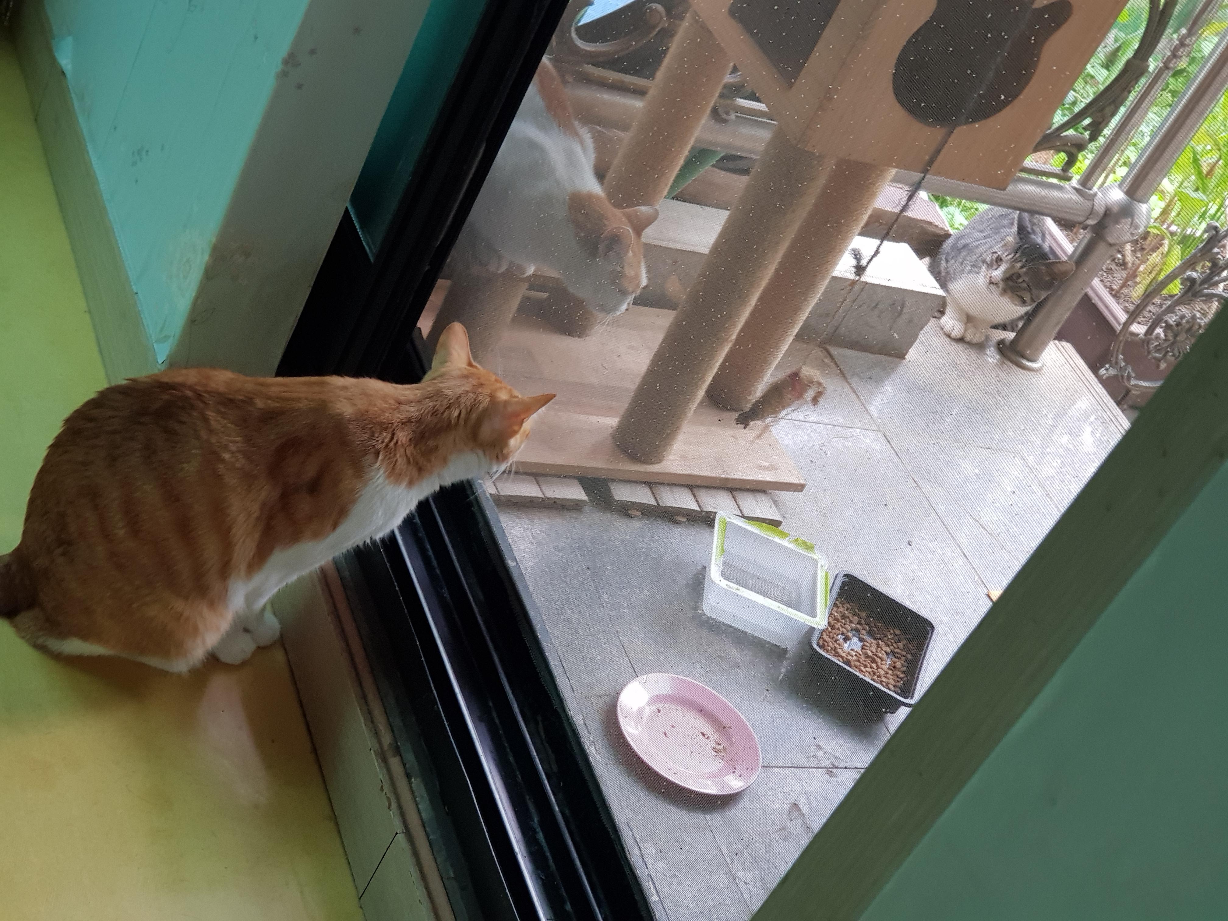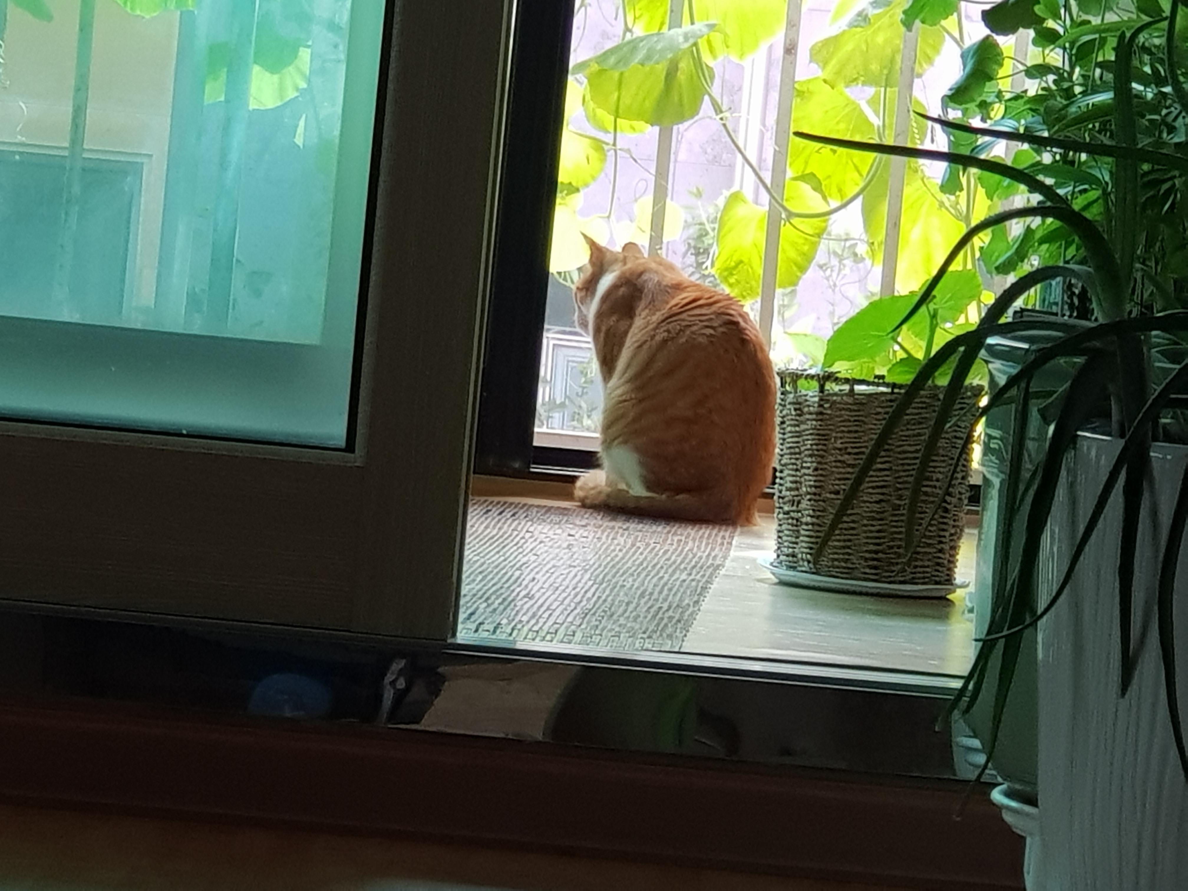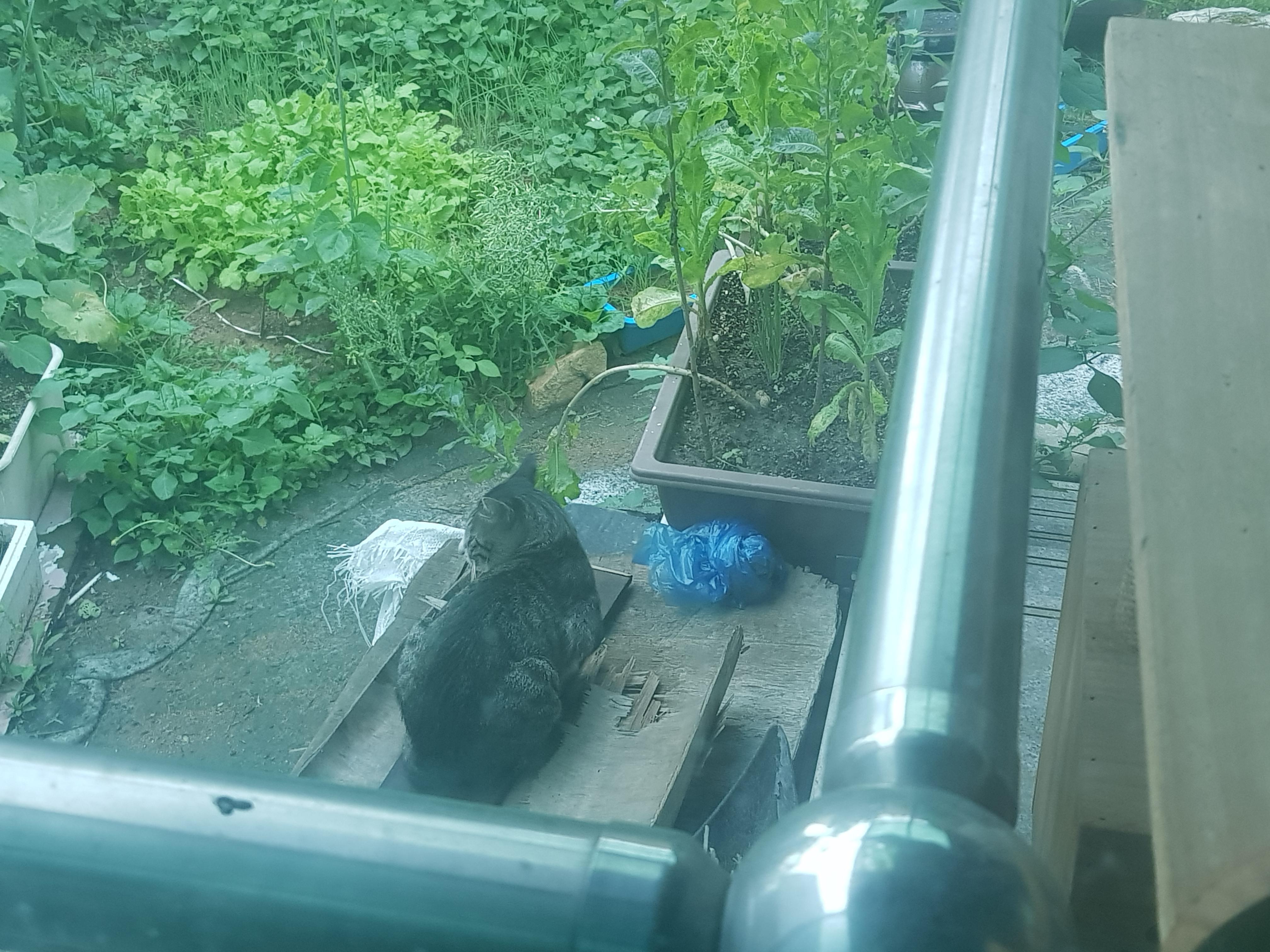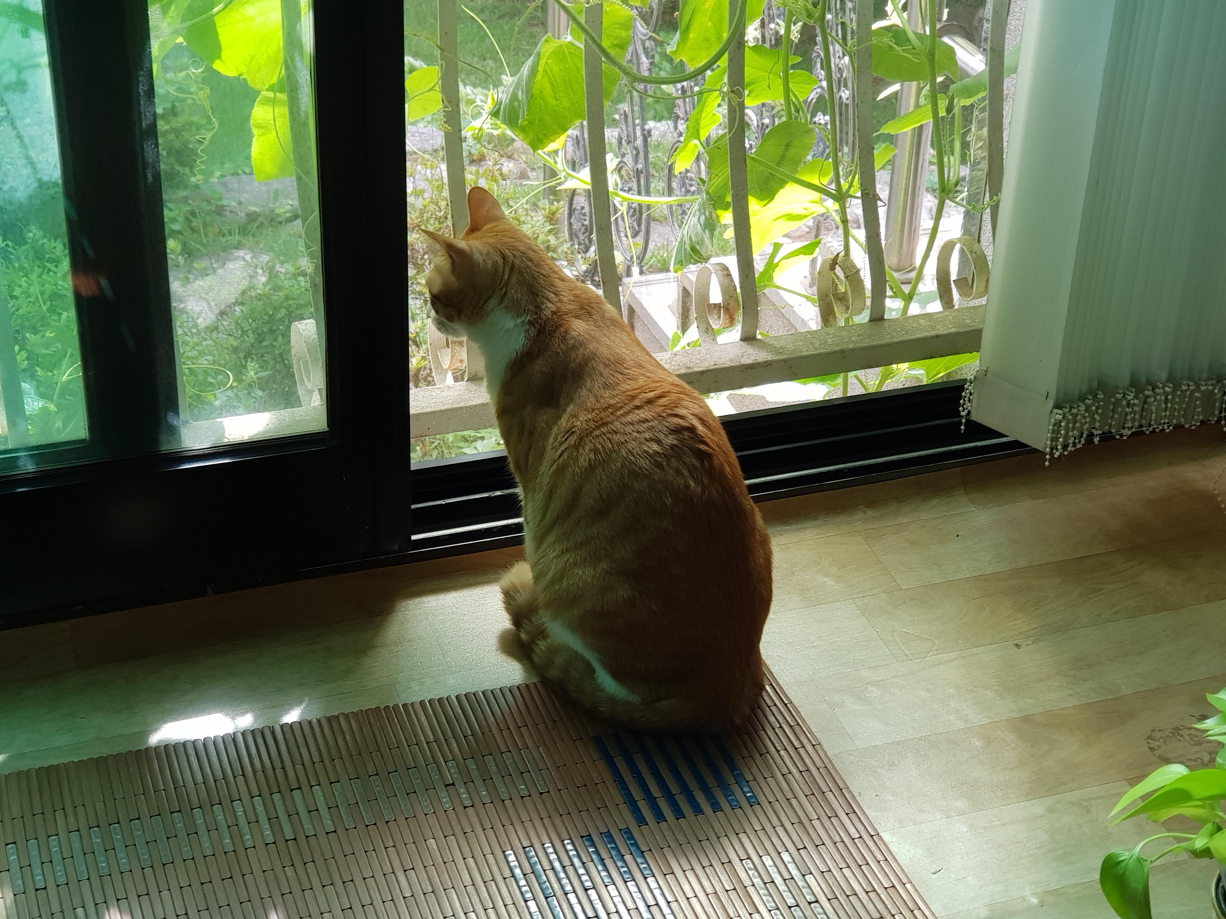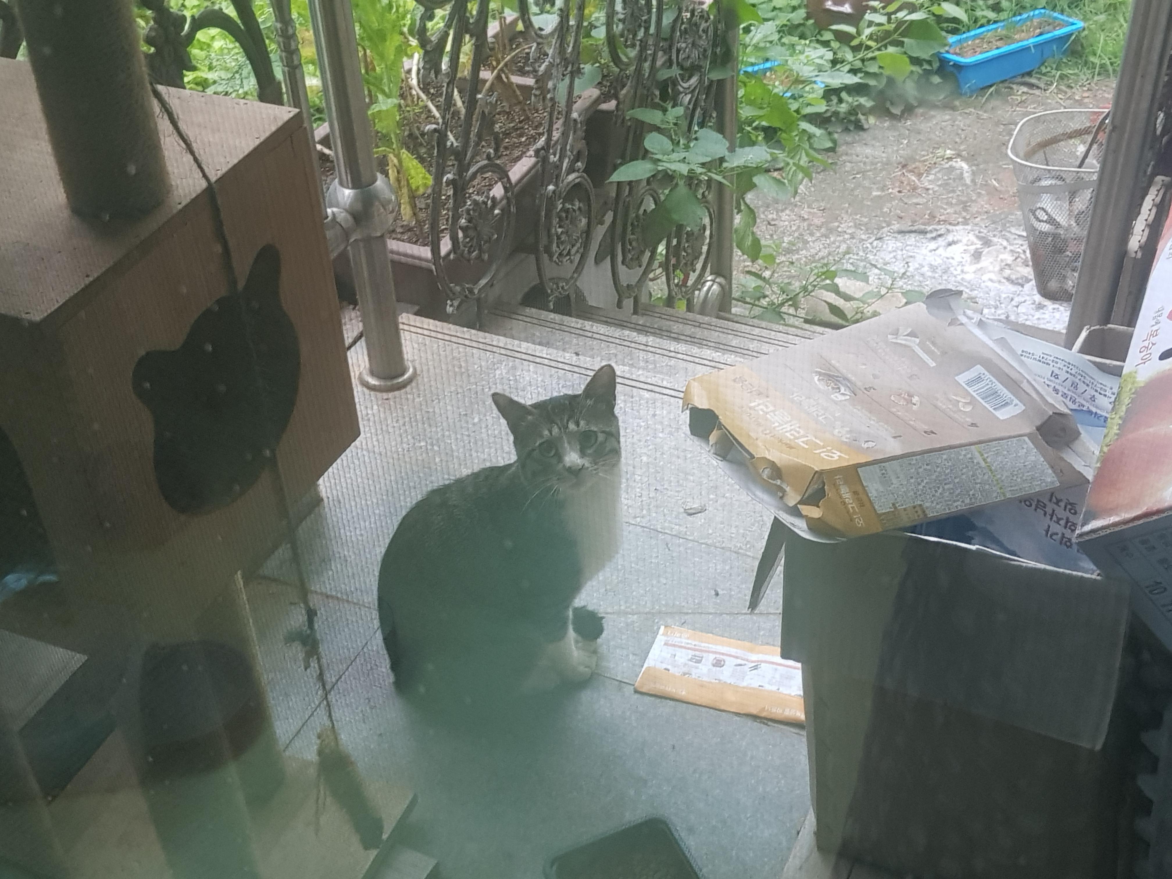 치즈냥이는 아예 이 집 경비원으로 있기로 결정한 것인가