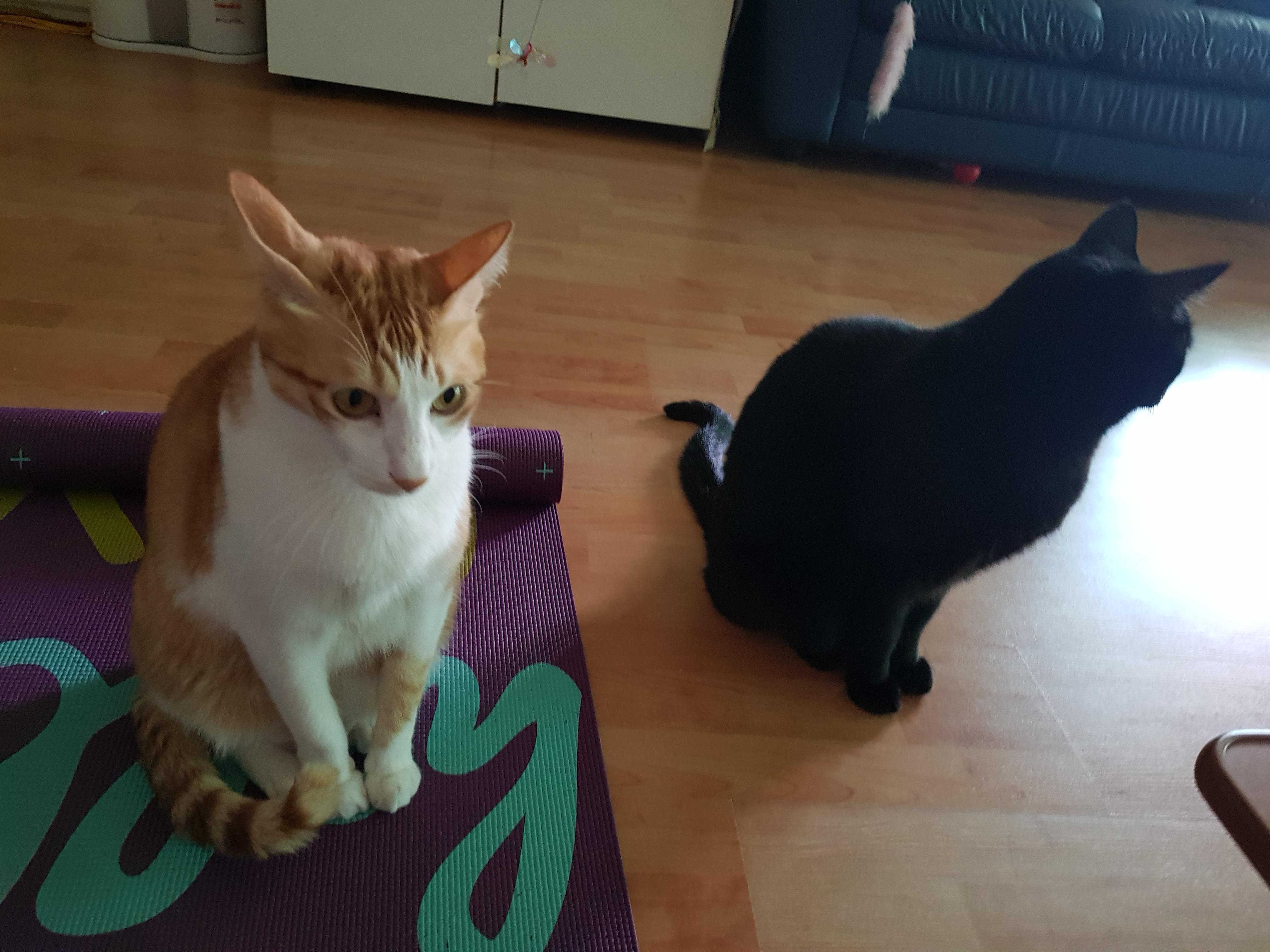 검냥이랑 어느새 등장한 치즈냥이의 기싸움-