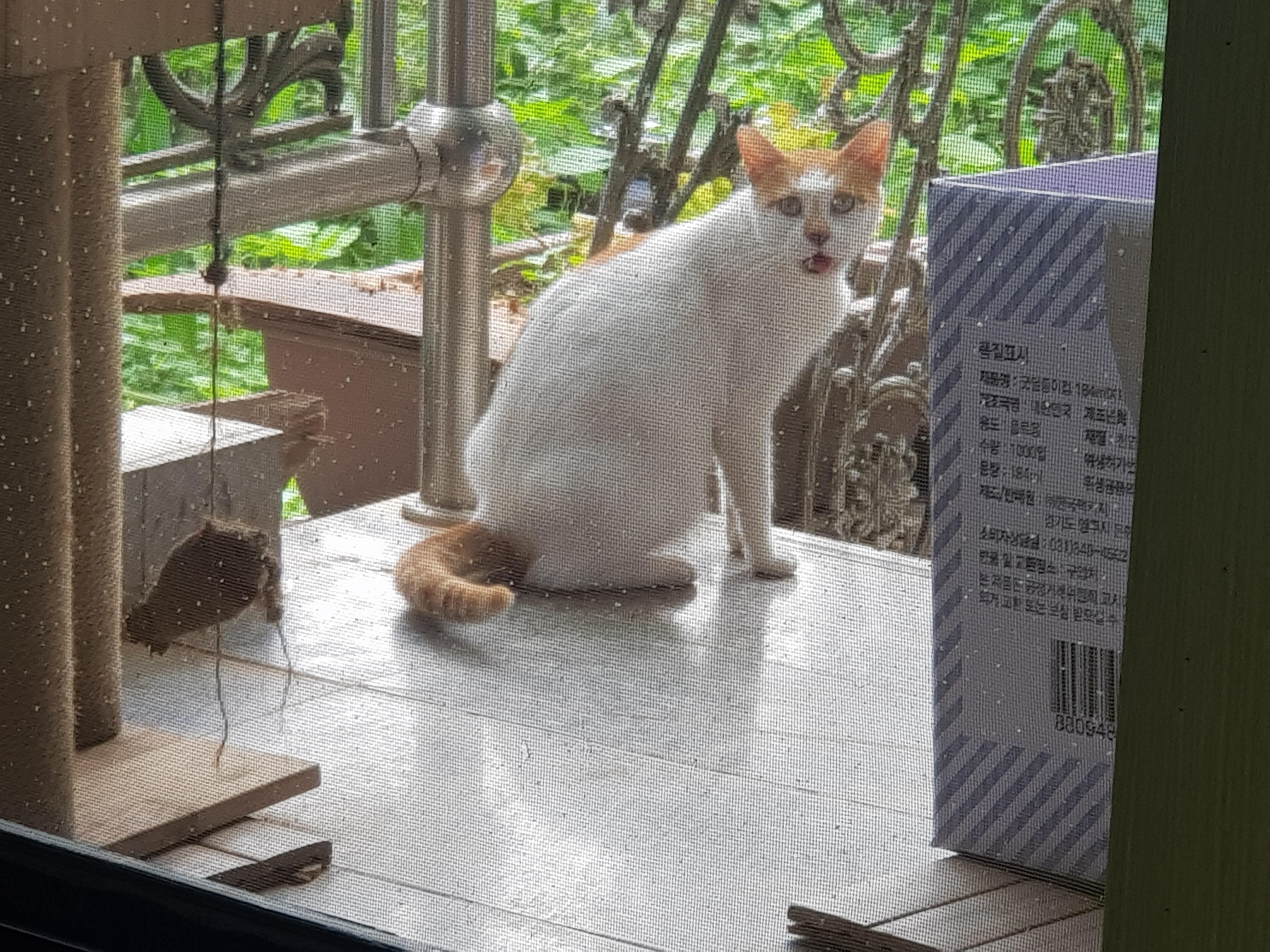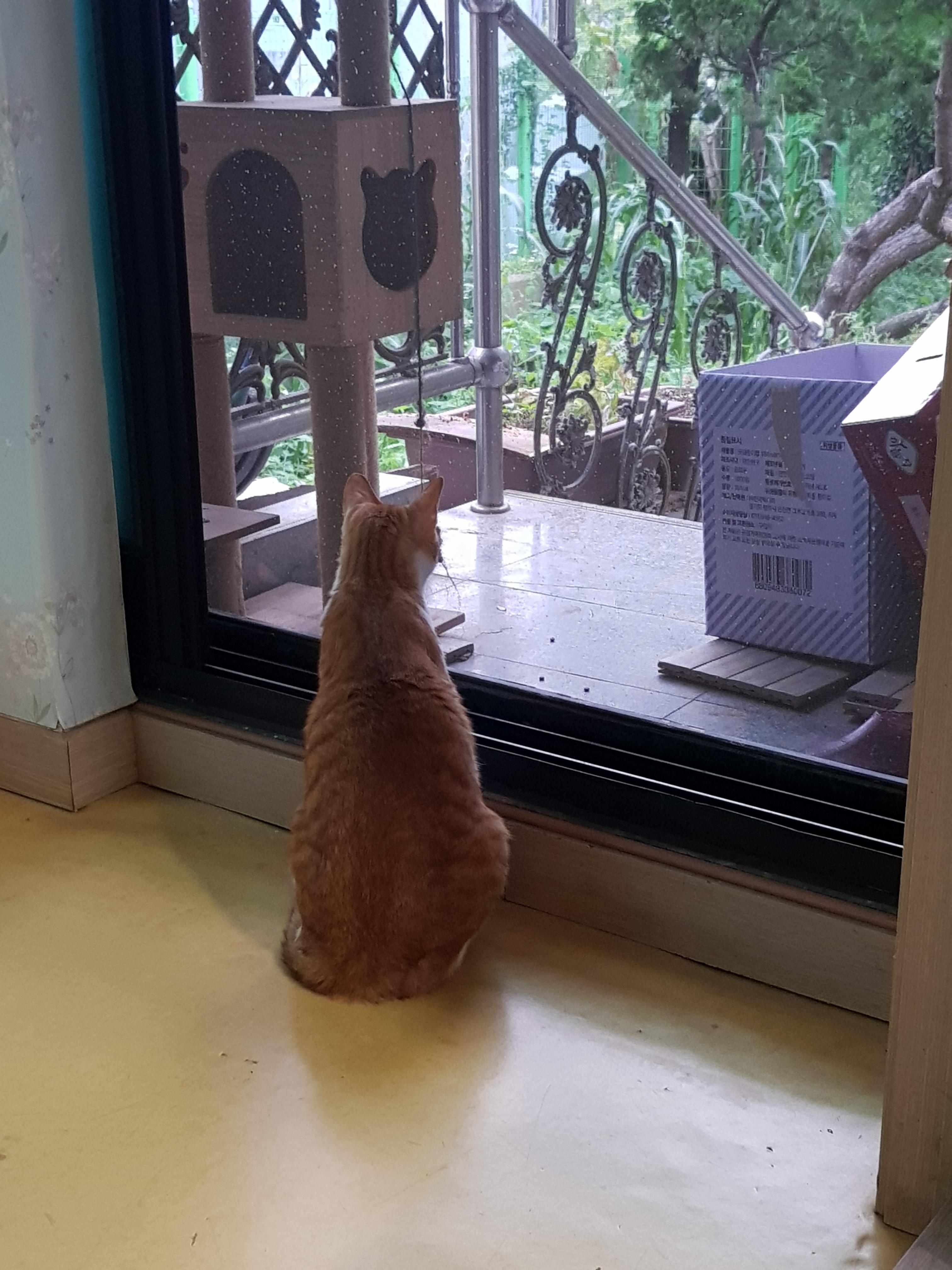 길냥이 안오나- 기다리는 중. 요즘 길냥이 발길이 뜸허다-