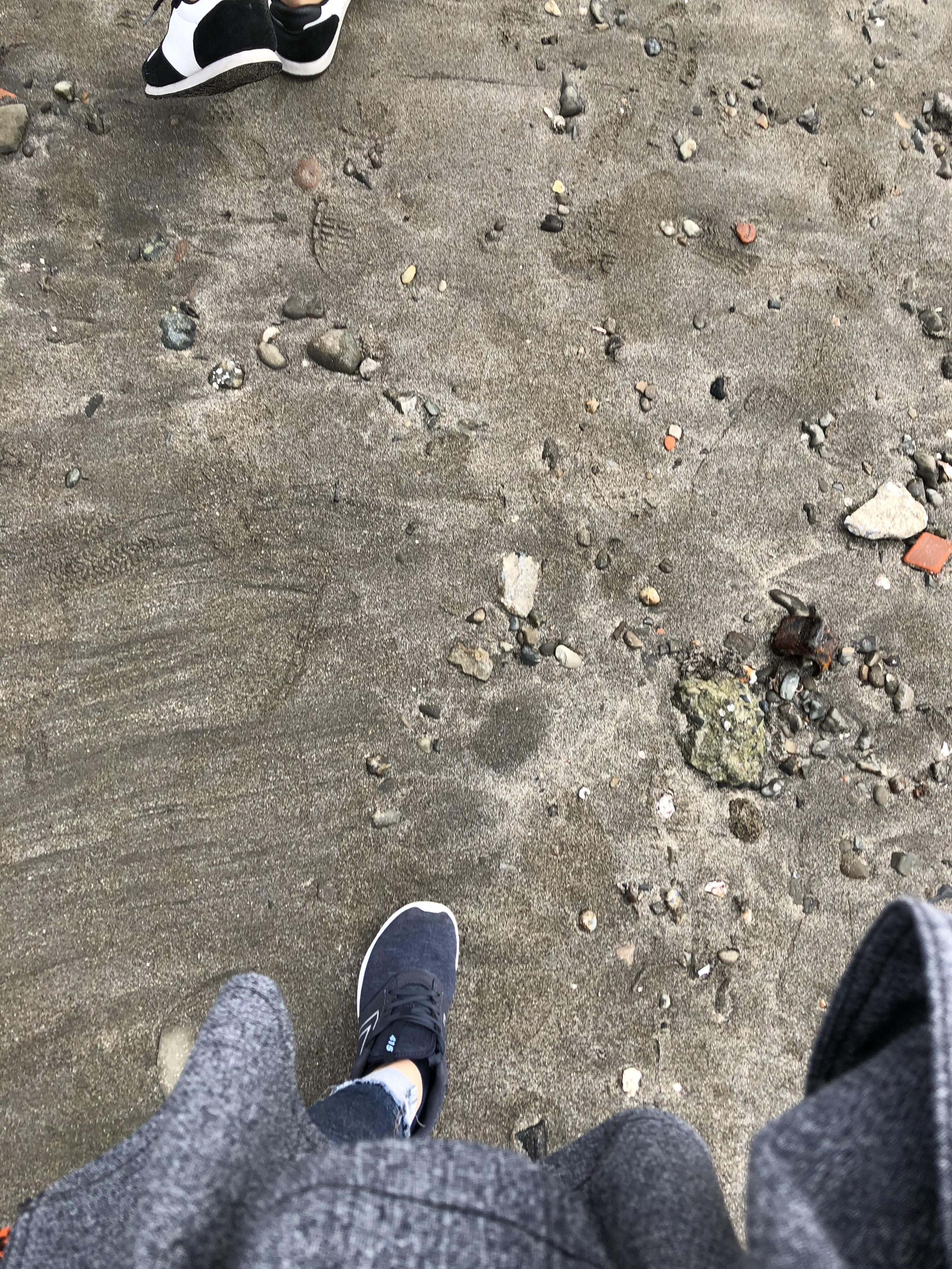 해변에 돌맹이 조개 껍데기 많다-