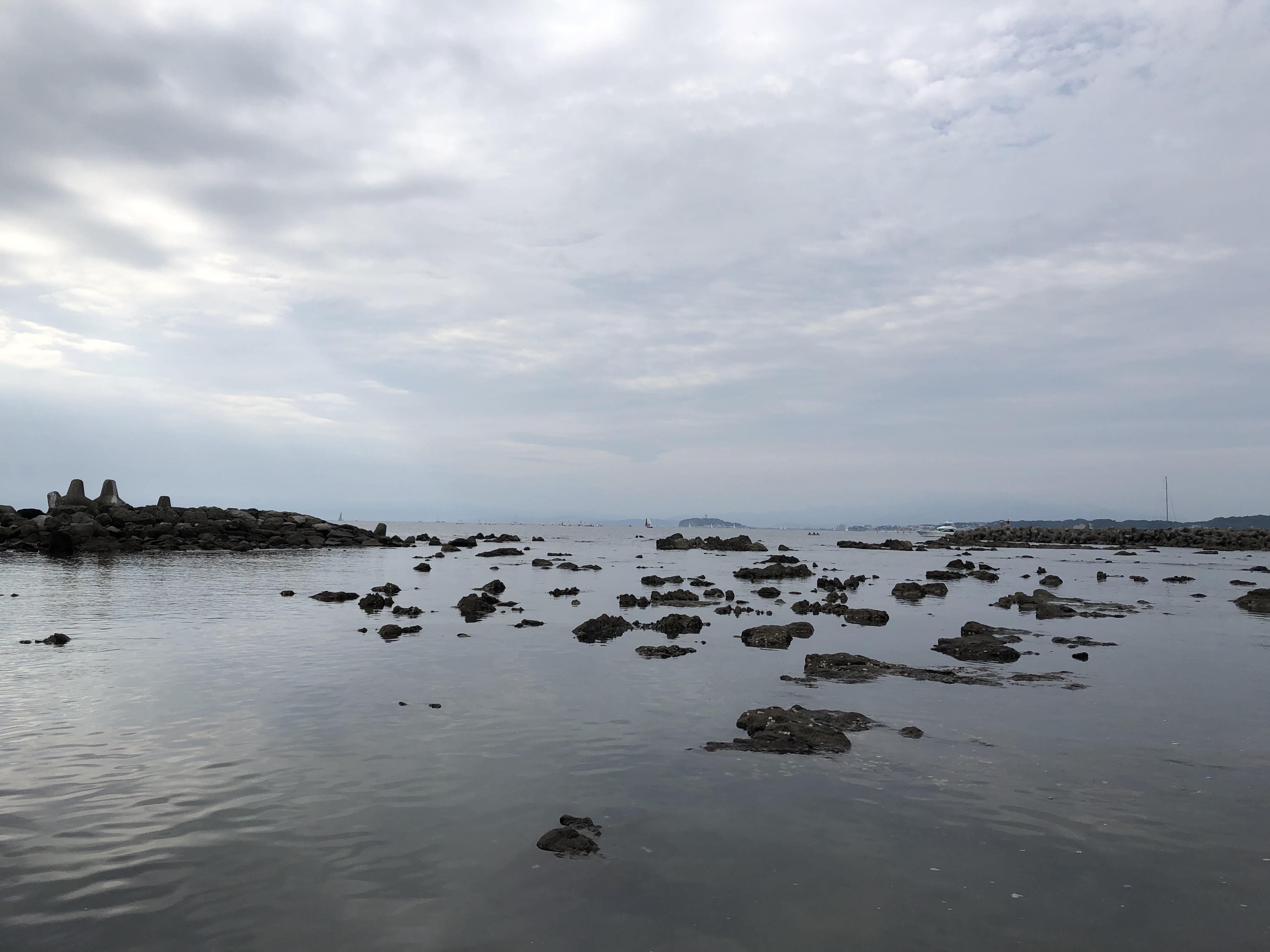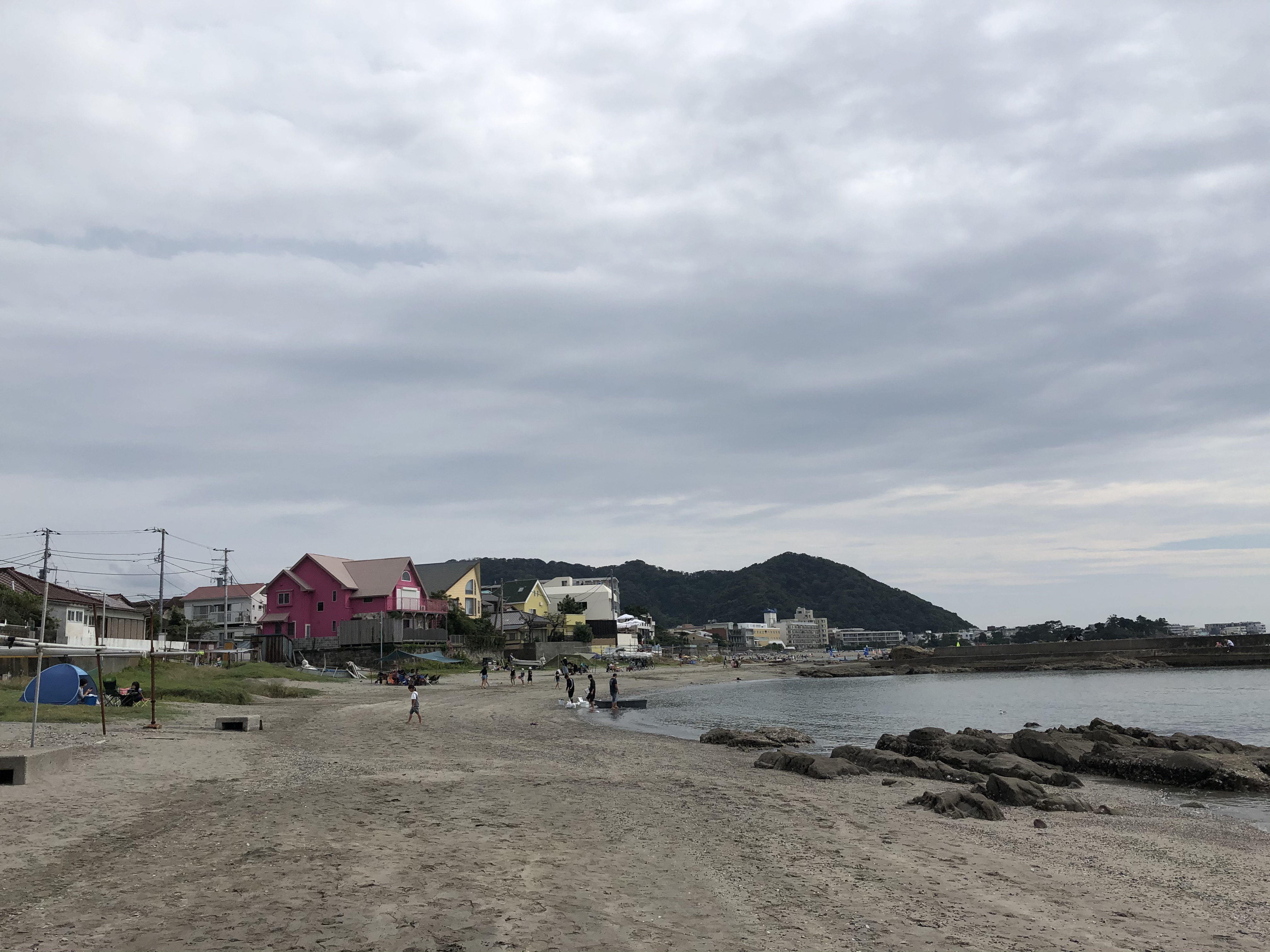 에노시마와 달리 이쪽 해변에는 돌맹이가 많음