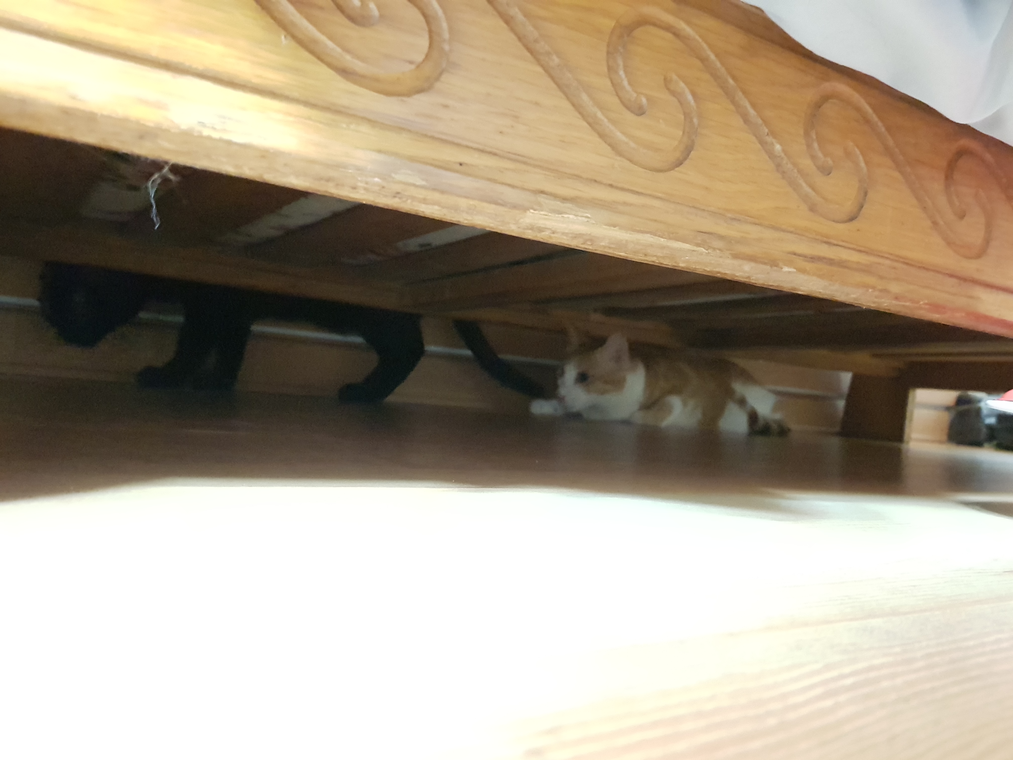 예상치 않은 침범에 급 소파 밑으로 도망가서 포복전진