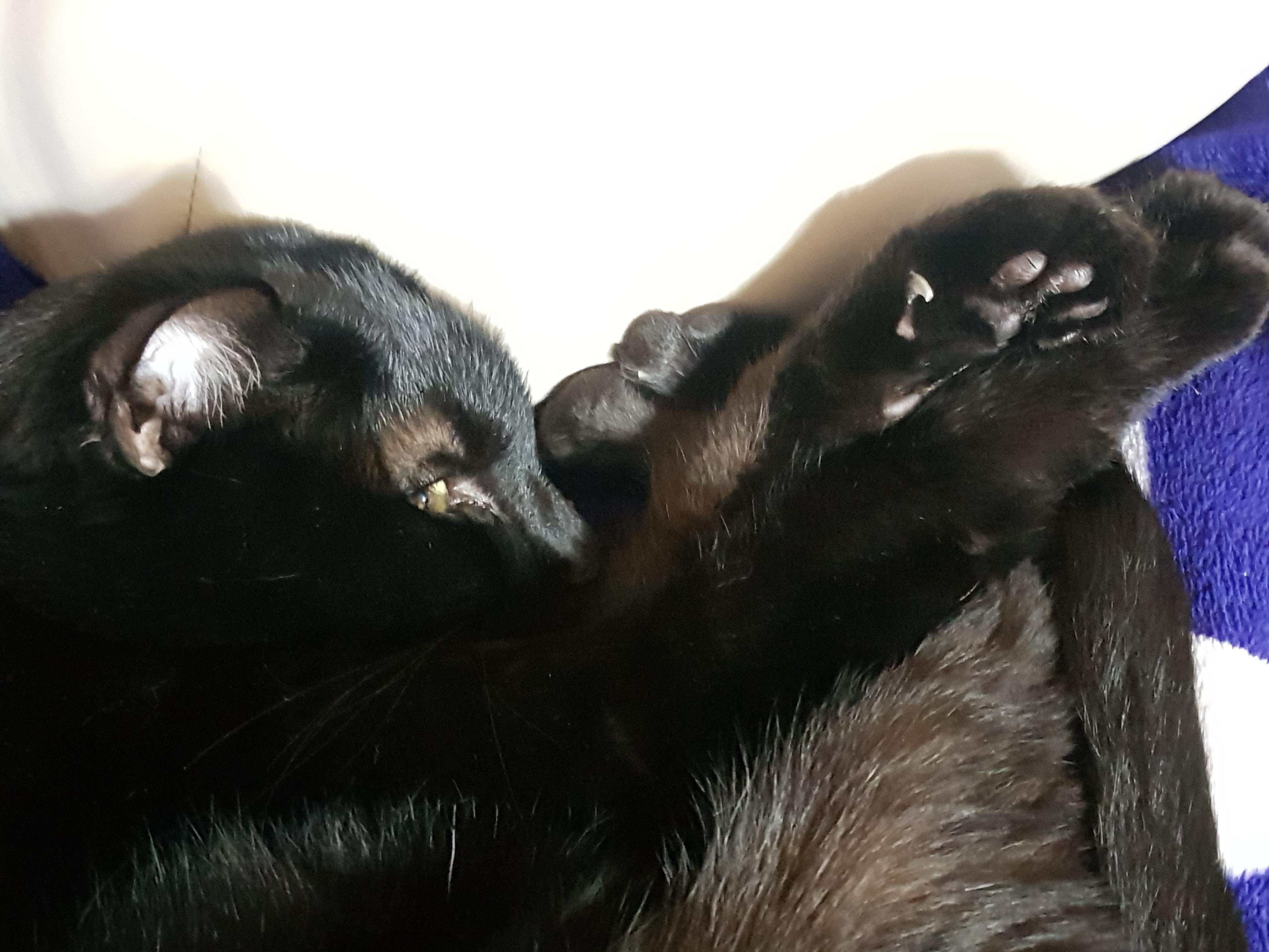 엄마한테만 애교냥이인 감자 어무니한테 기대서 그루밍 중