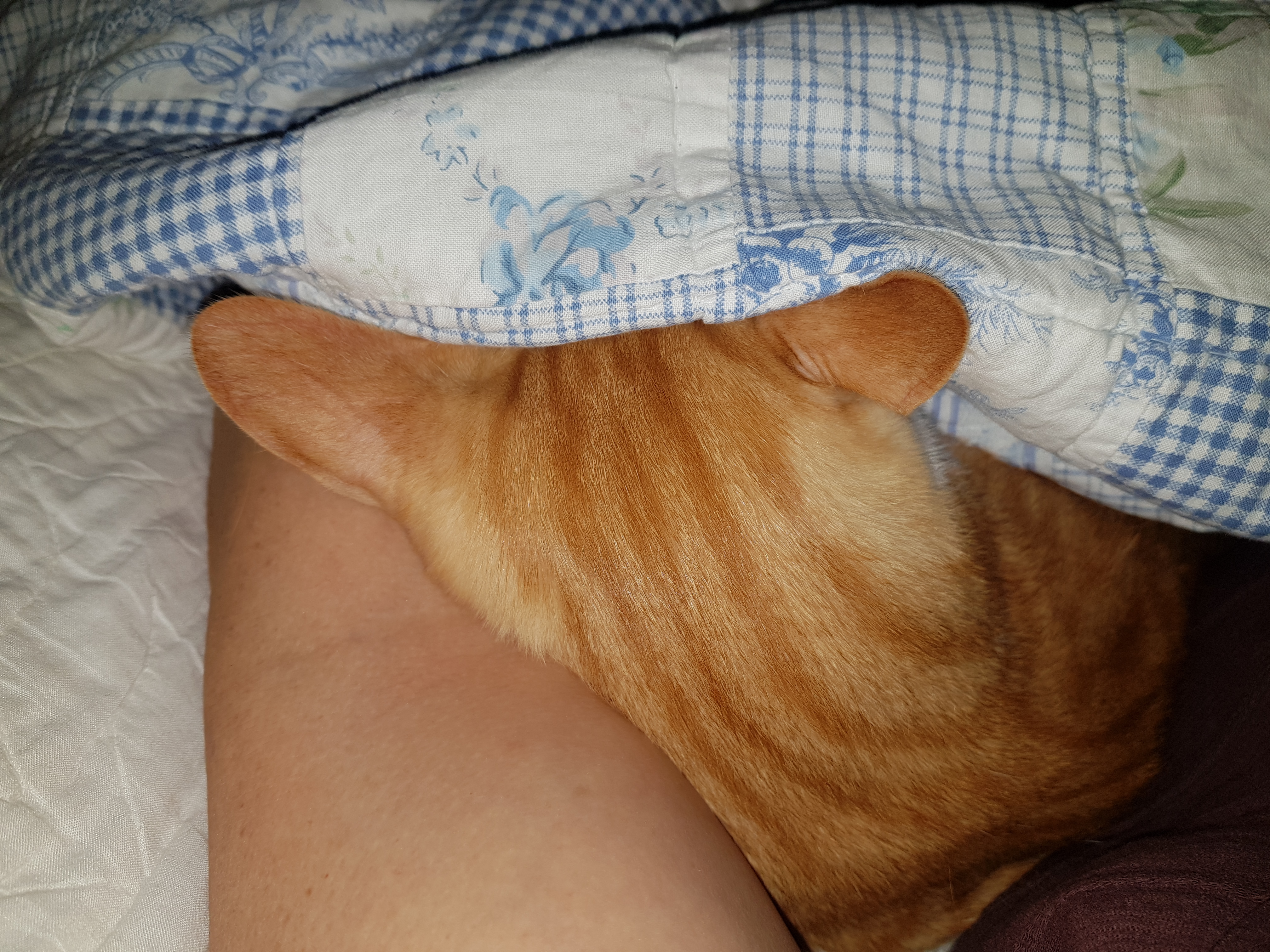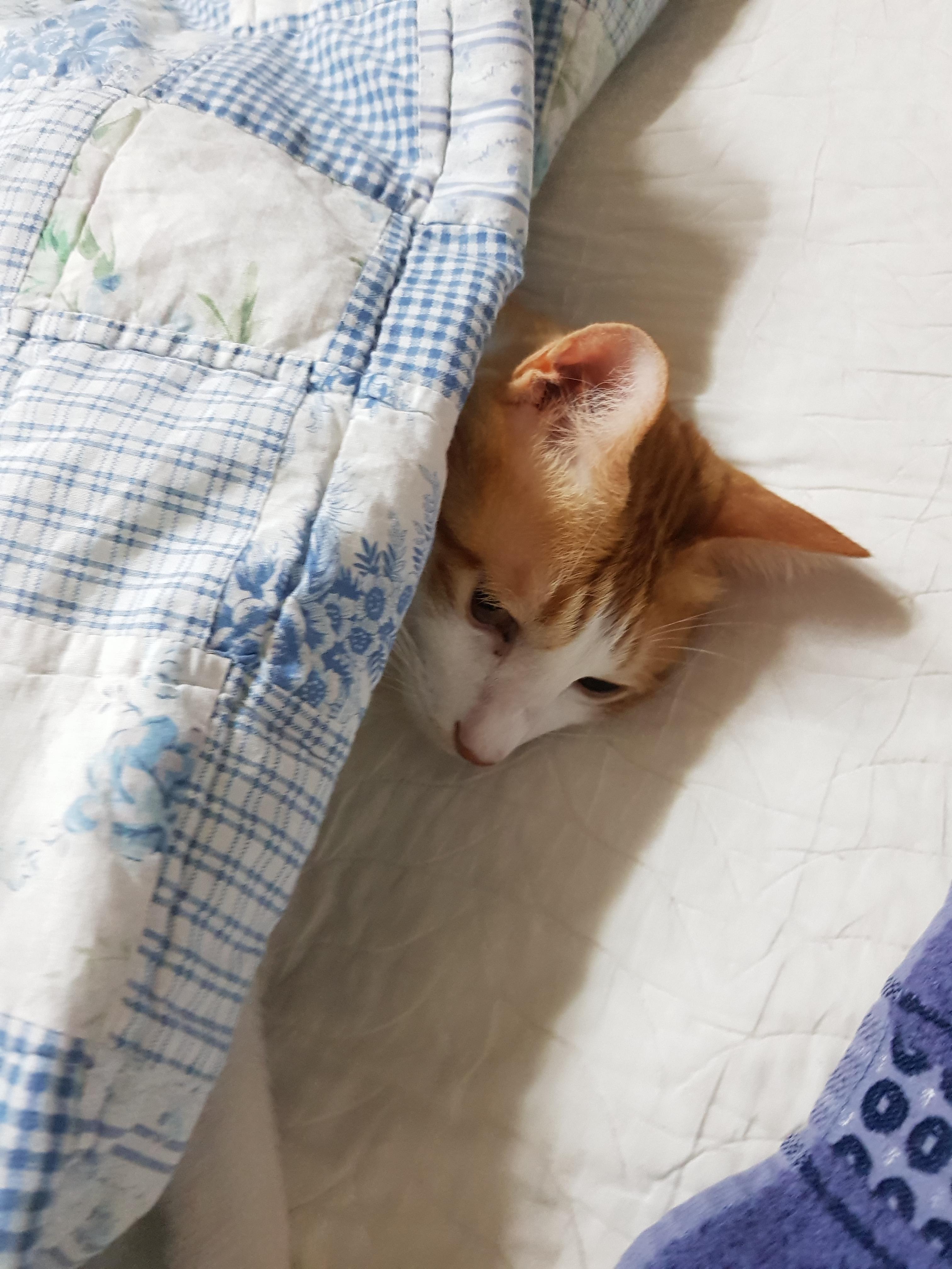 끌어 안아서 이불 속으로 넣음