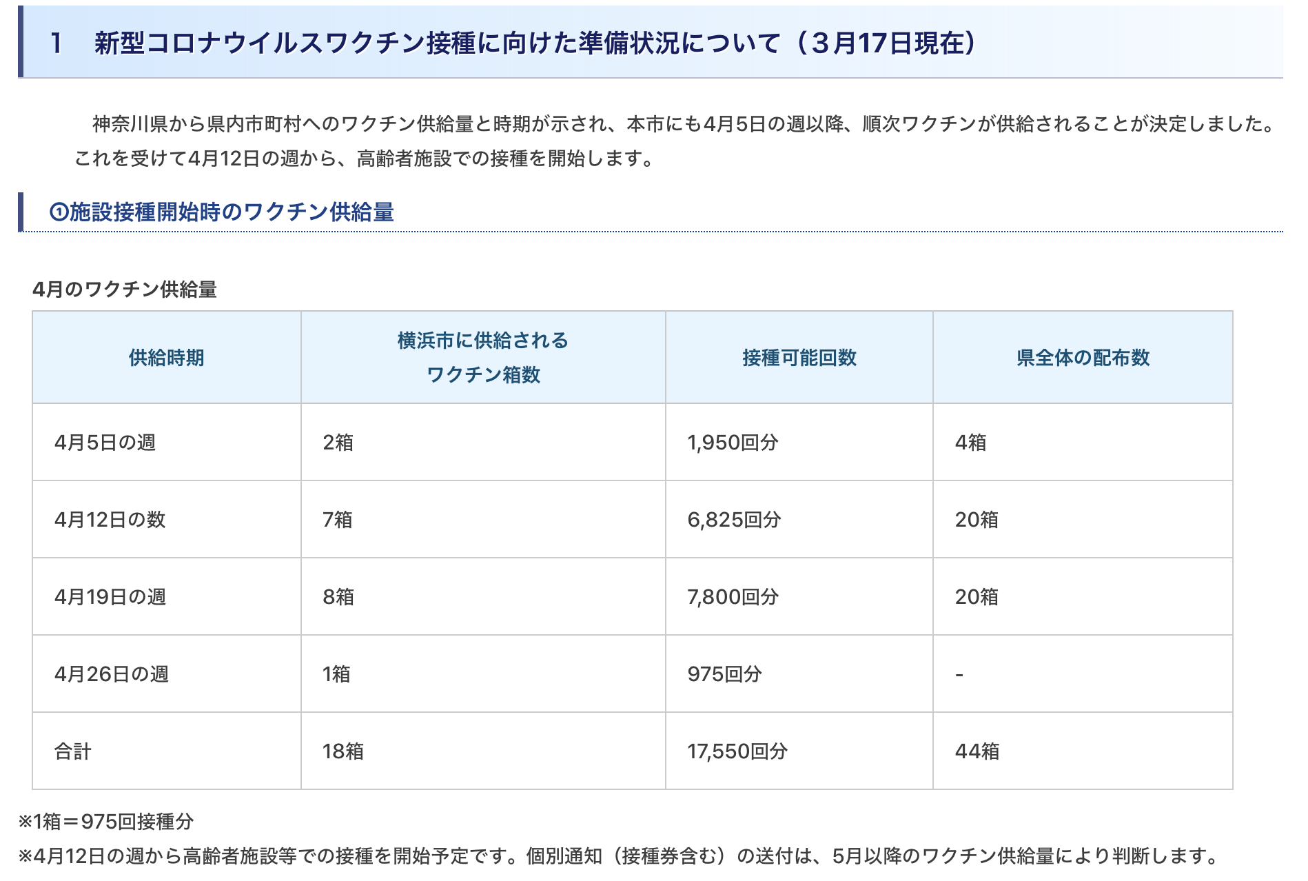 접종이 시작되는 4월 12일 주 에는 확보된 백신이 9000인분 정도여서