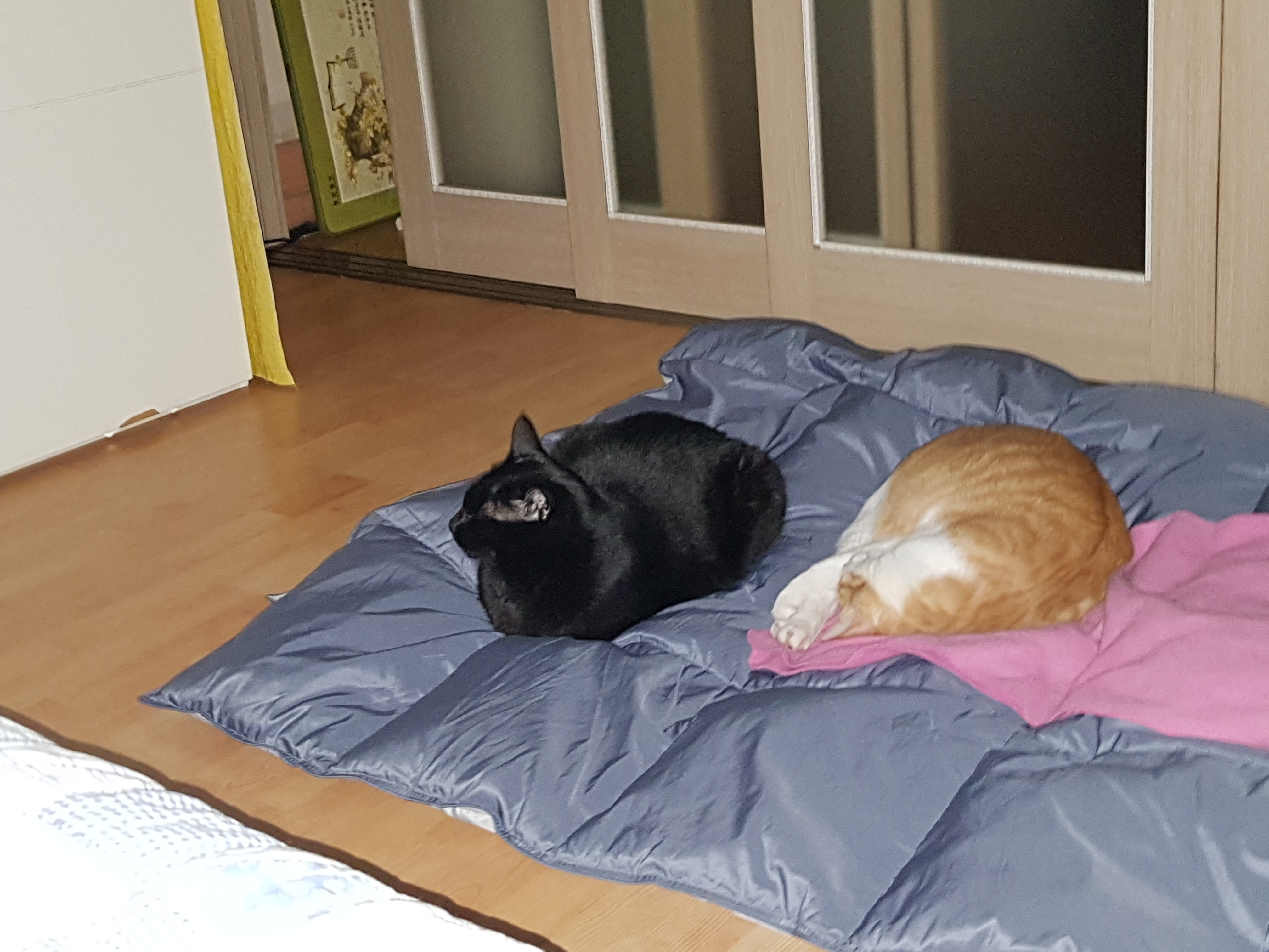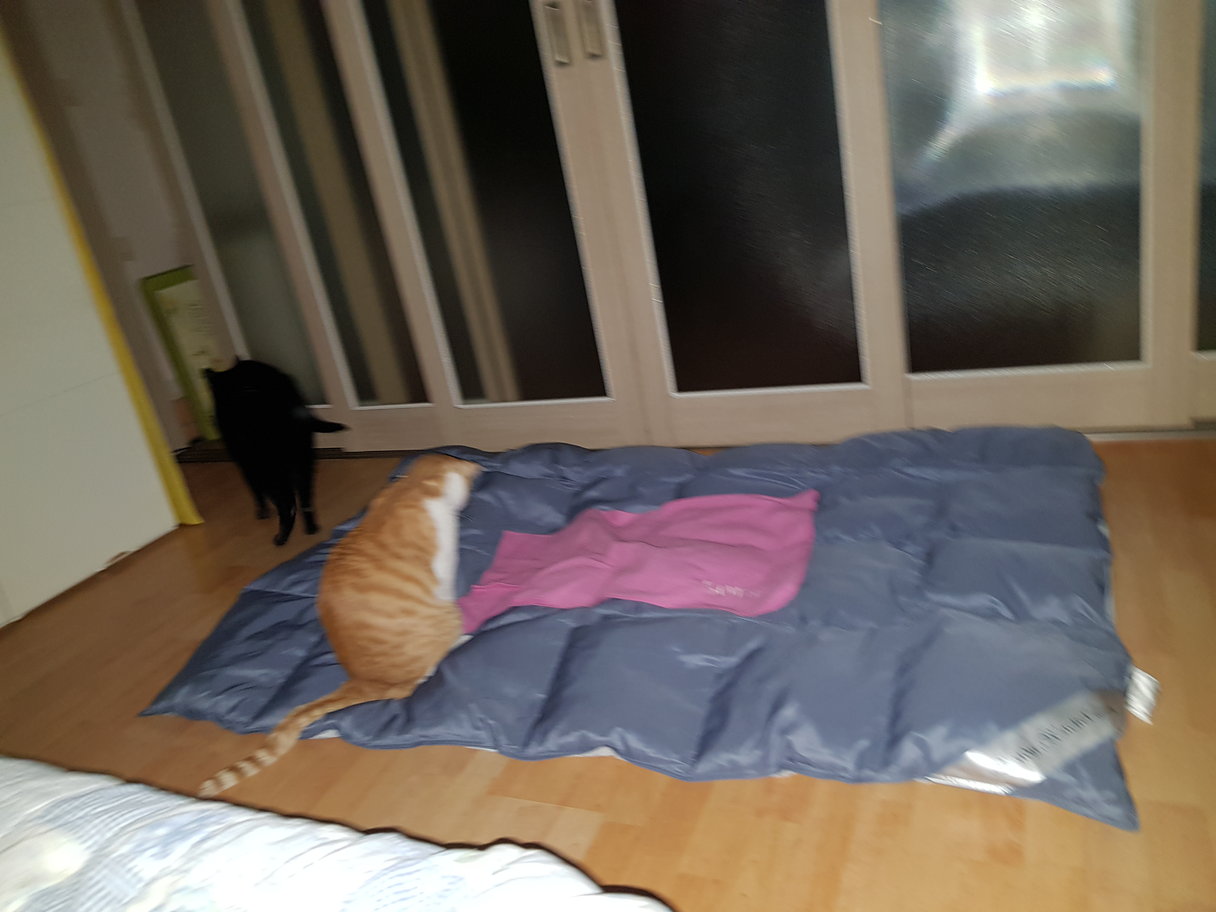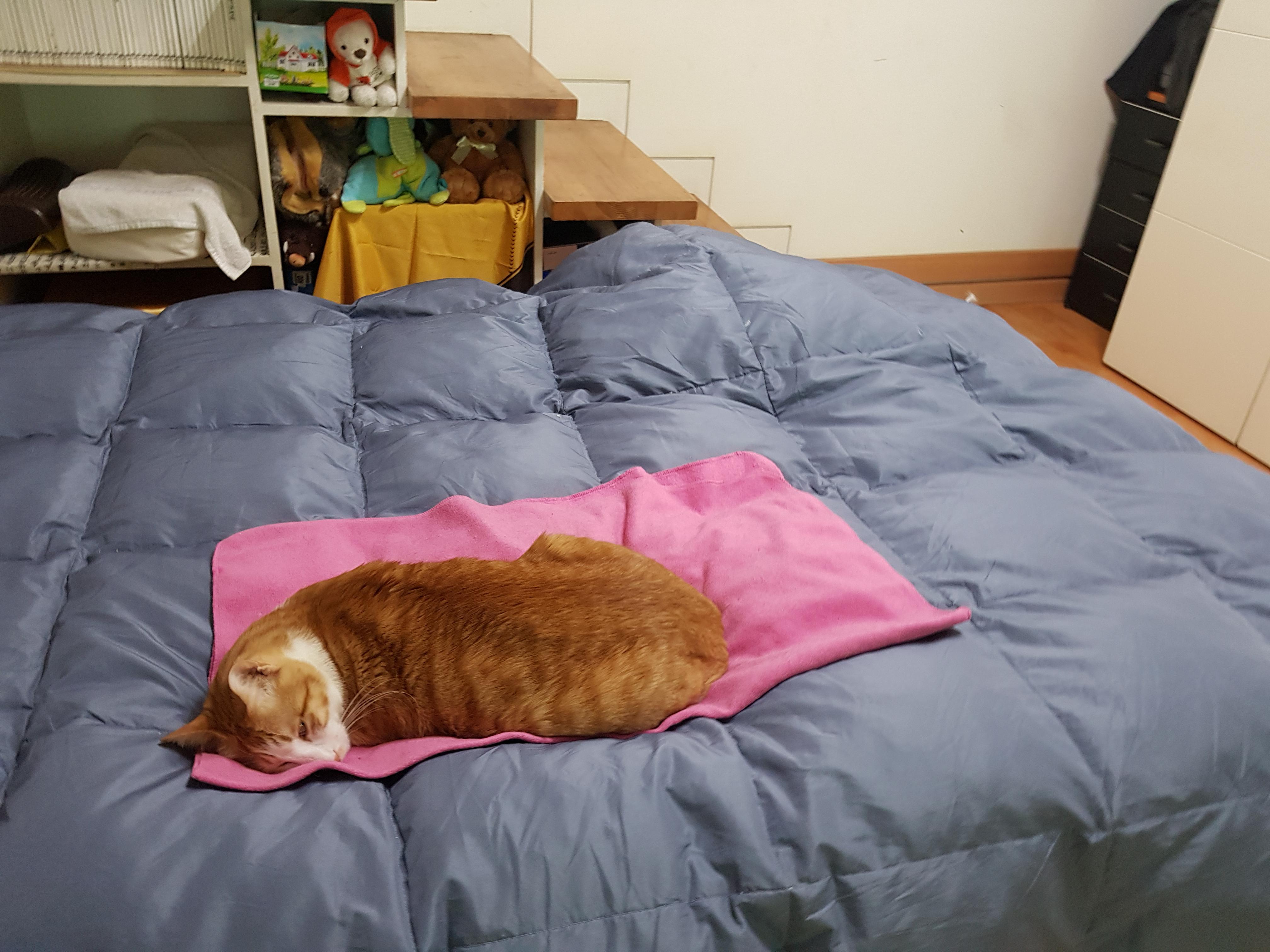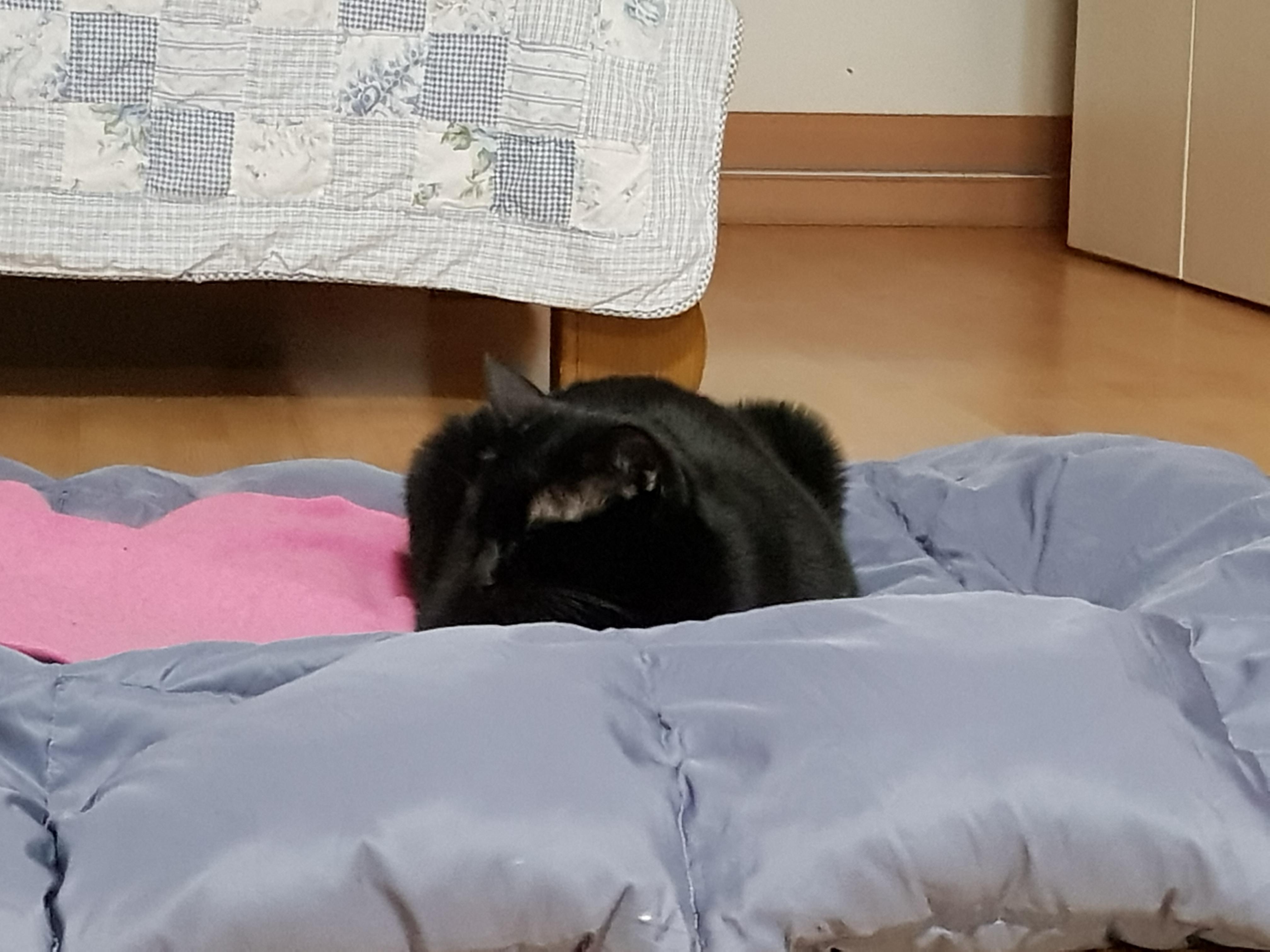 요즘 만두 감자 덕에 침대가 좁아서 이불을 깔아드림.