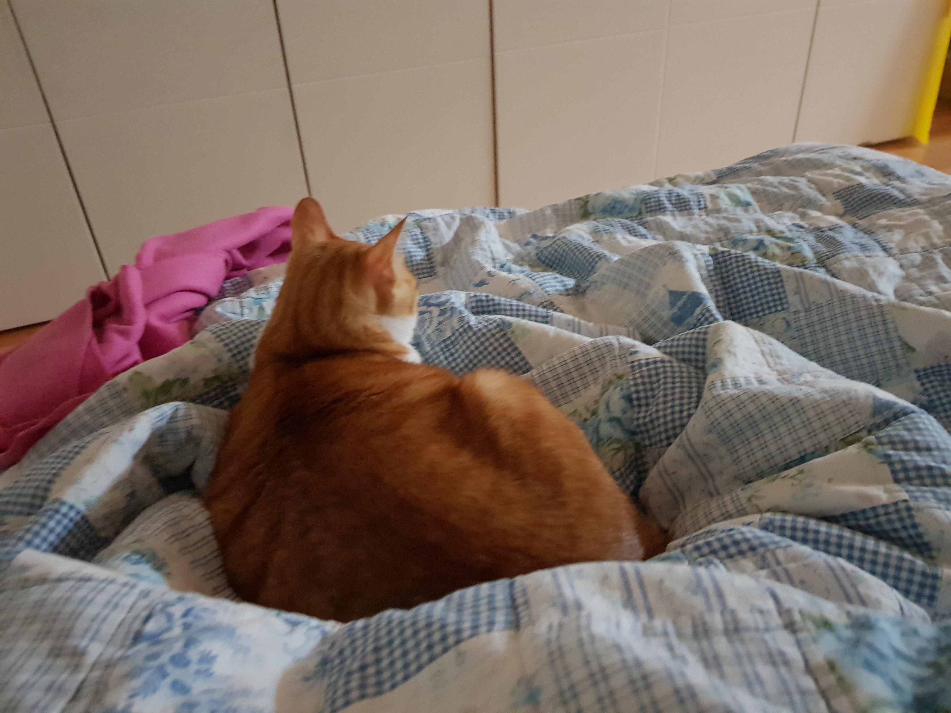 집사도 같이 누워볼까 하고 침대에 앉으니