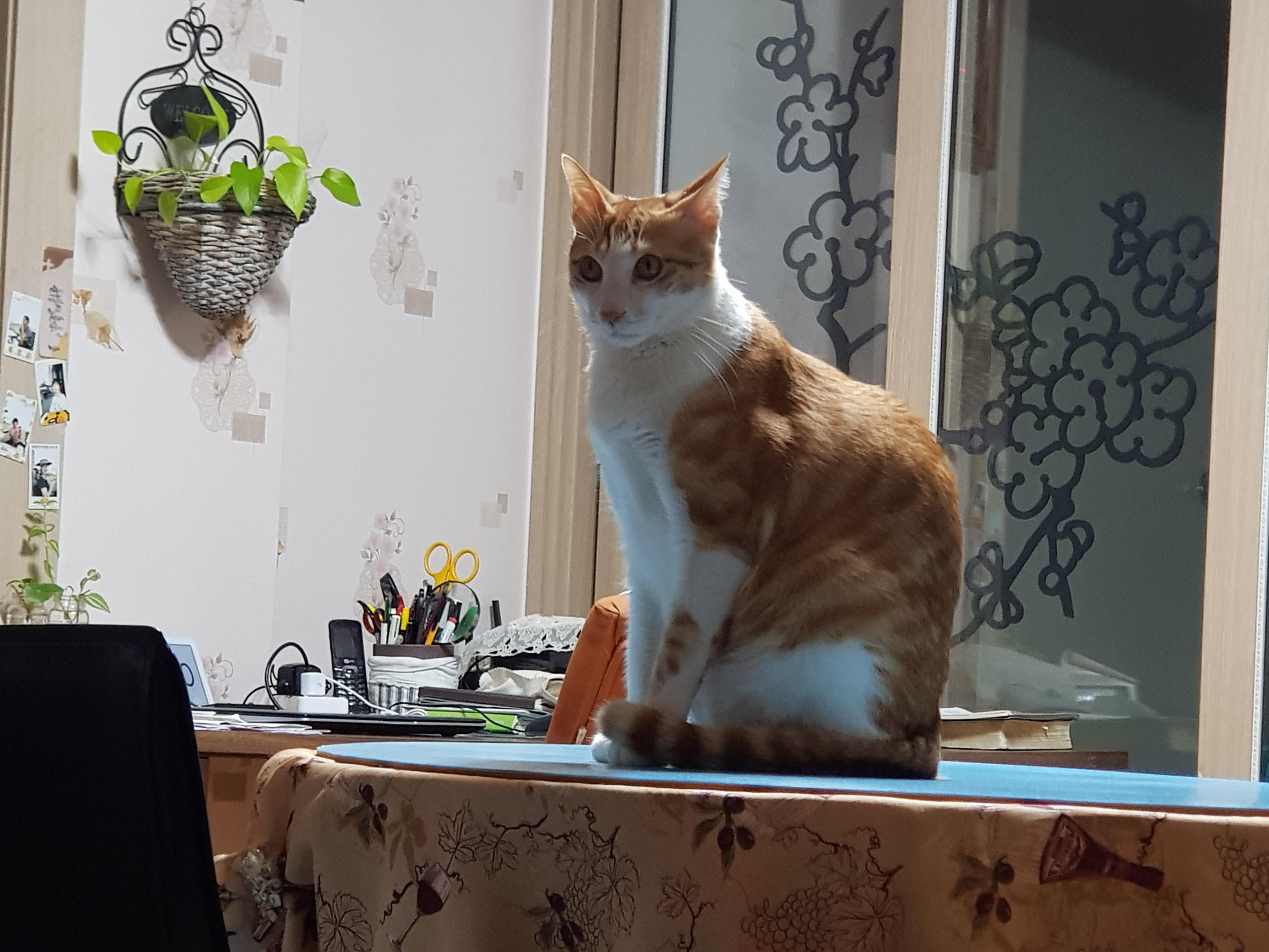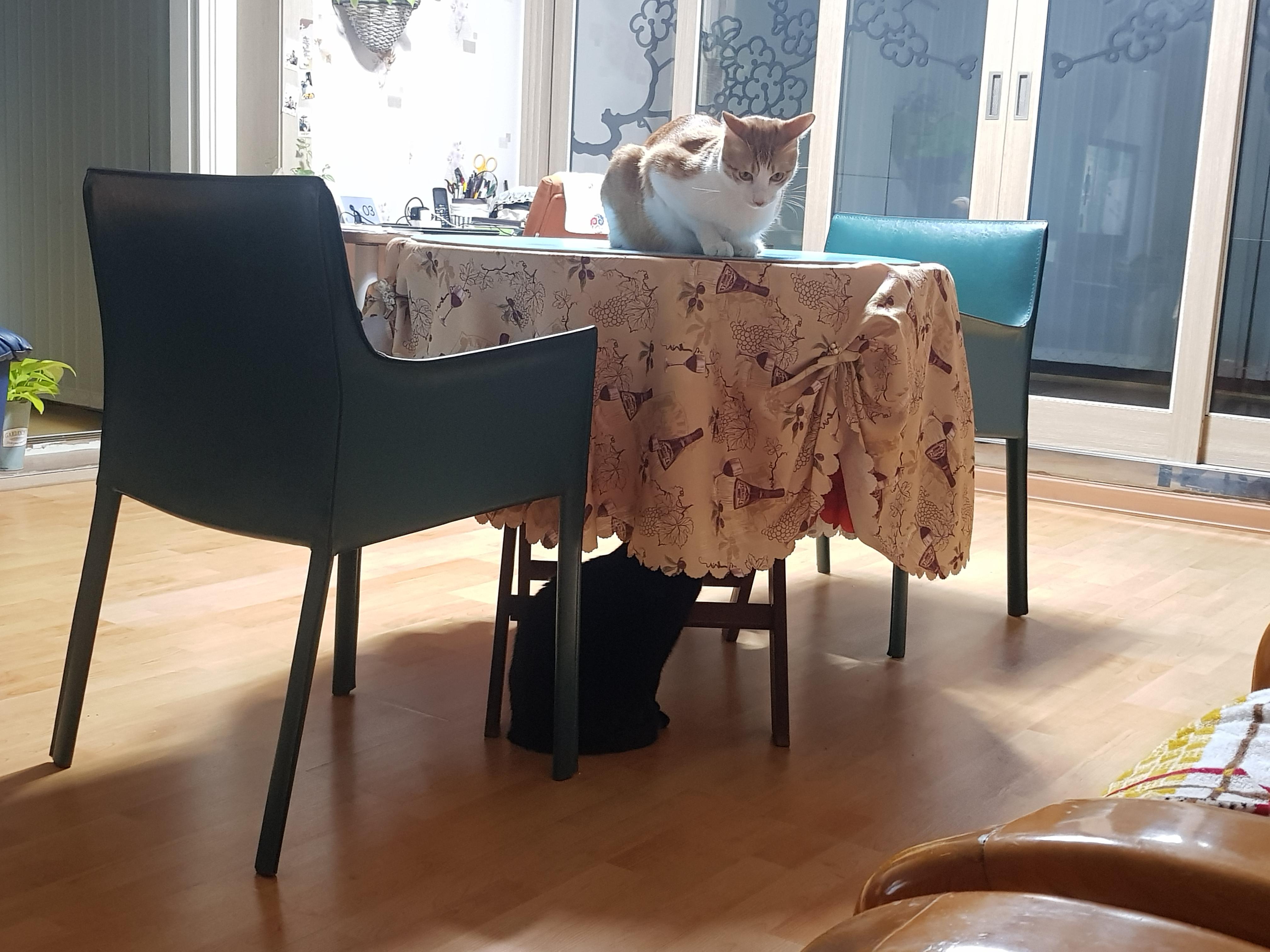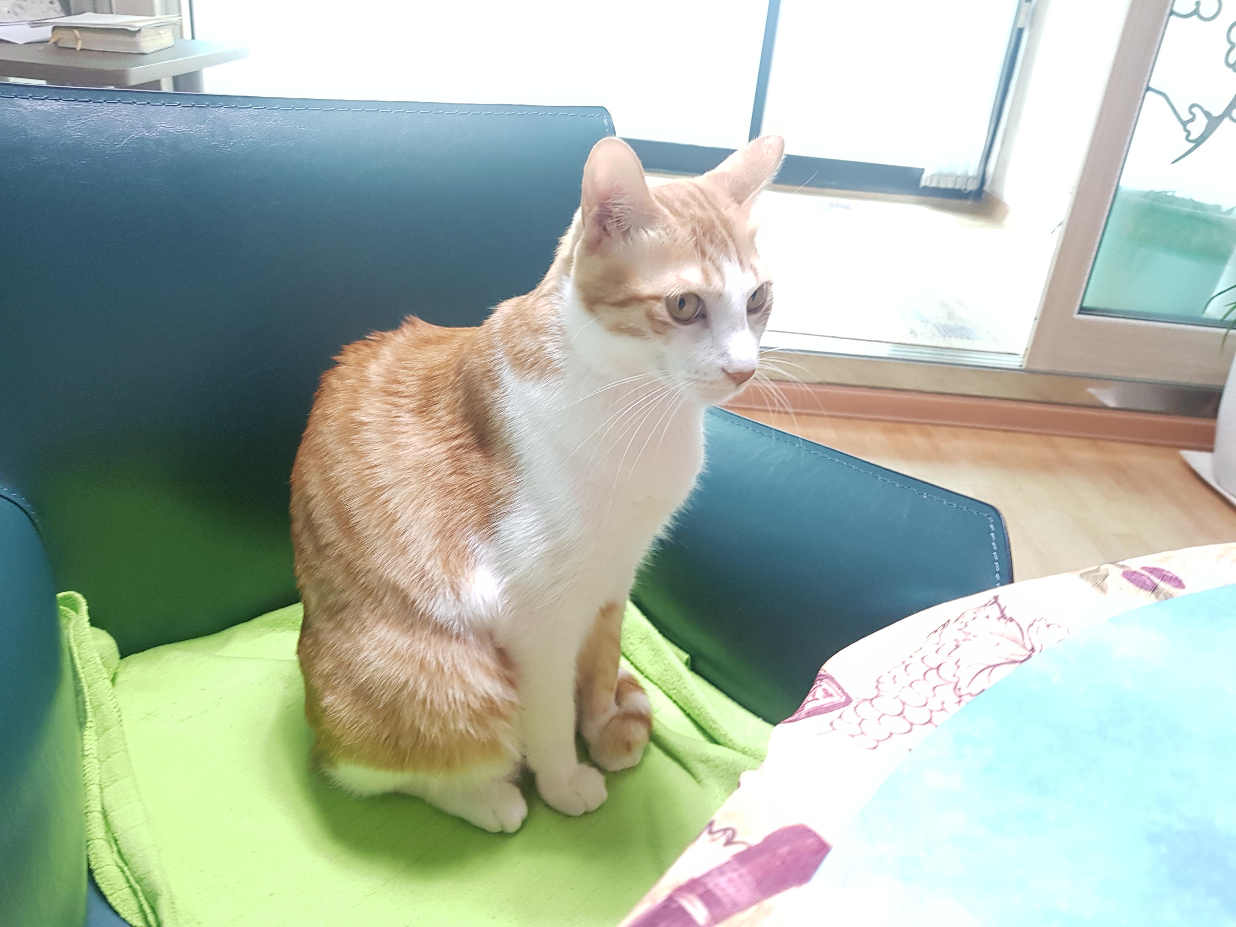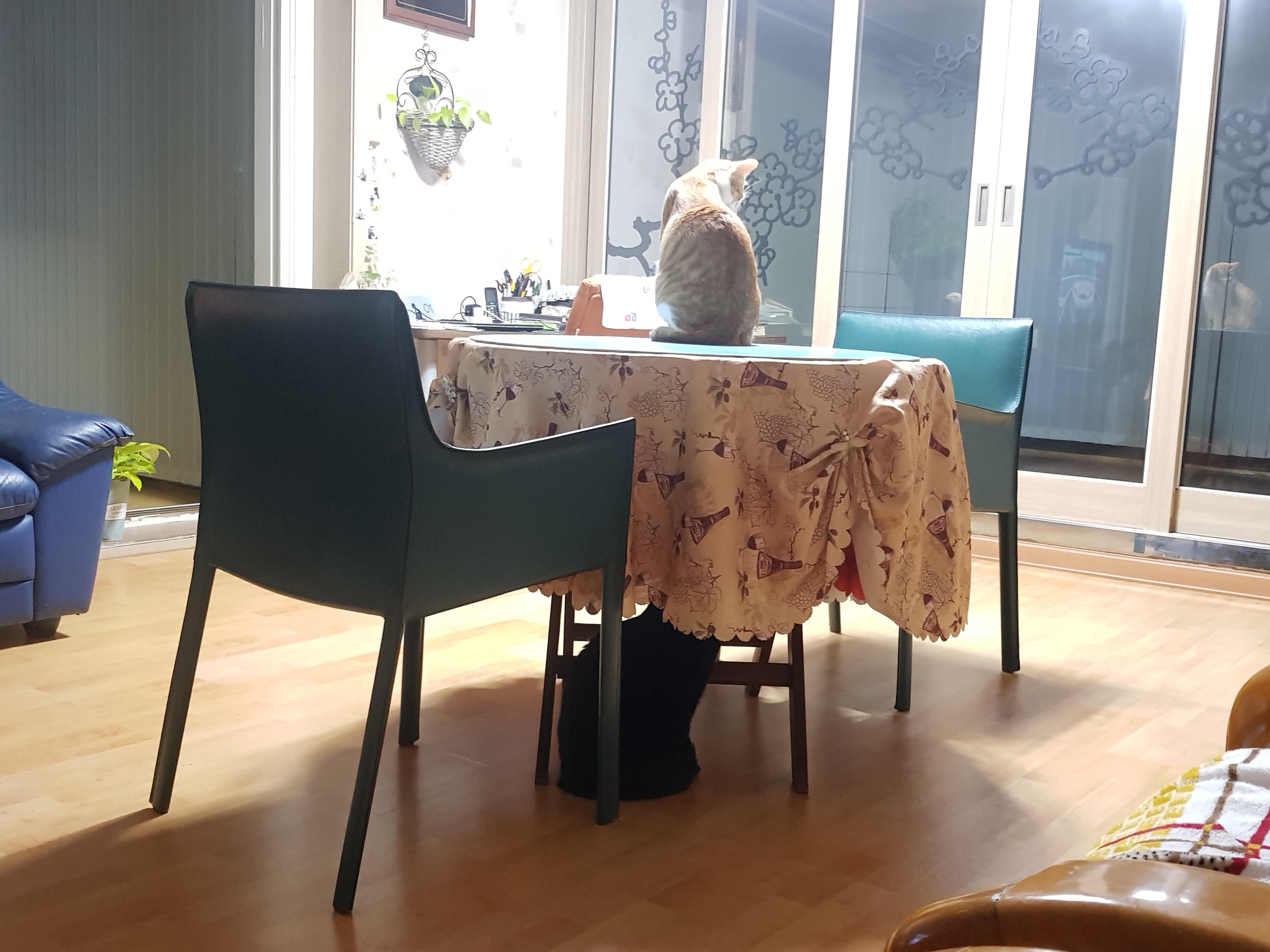 오늘은 결국 문 열었더니 손님과 어무님 사이 테이블 위에 올라와 계속 앉아 있었다 함.