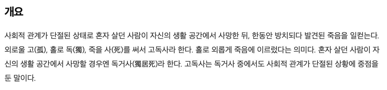고독사= 혼자 있던 사람의 죽음. 라 막연이 생각했던 나는