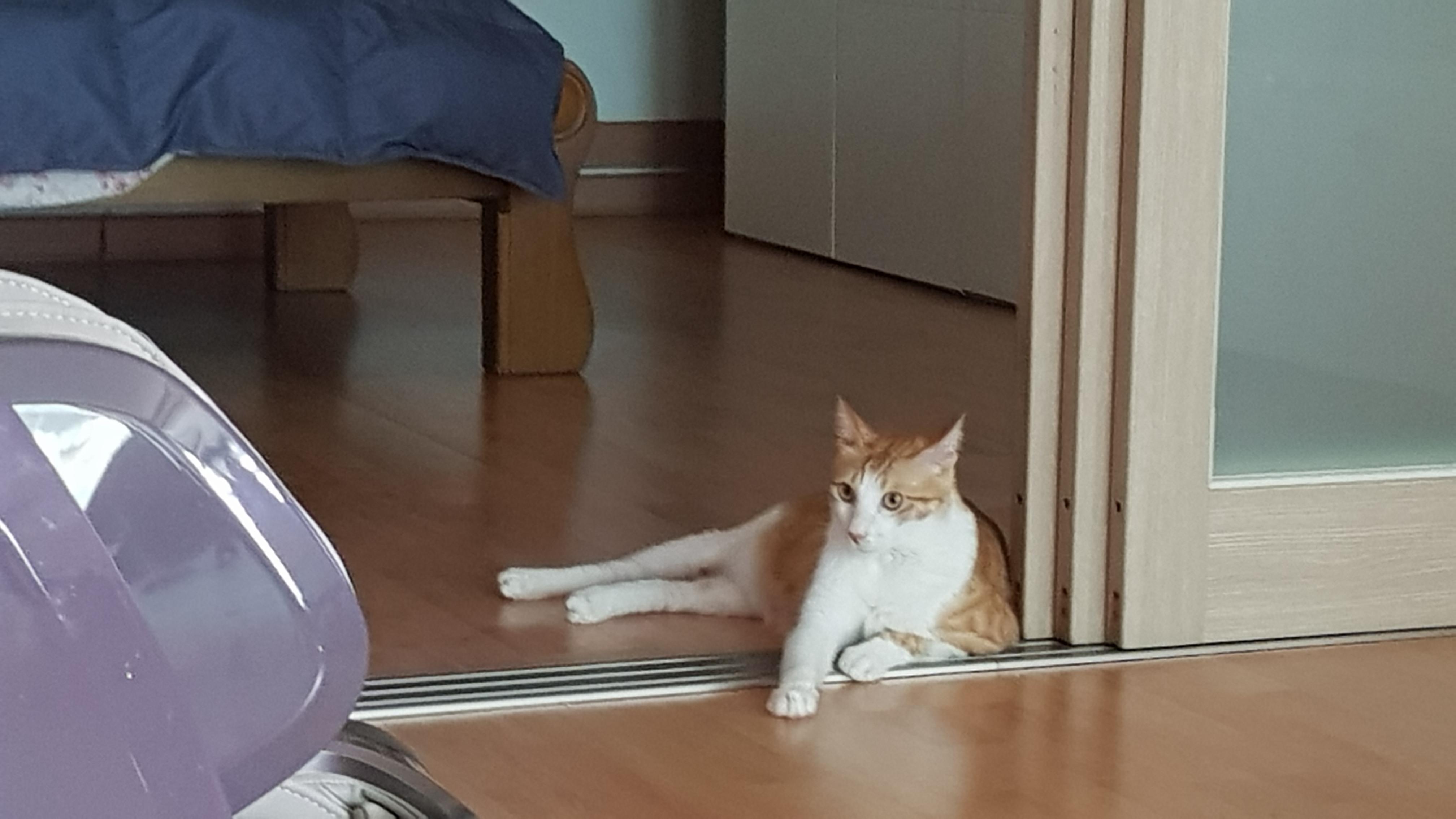 그 와중에 감자 ㅋㅋ 문 틈 앞에 자리 잡으심