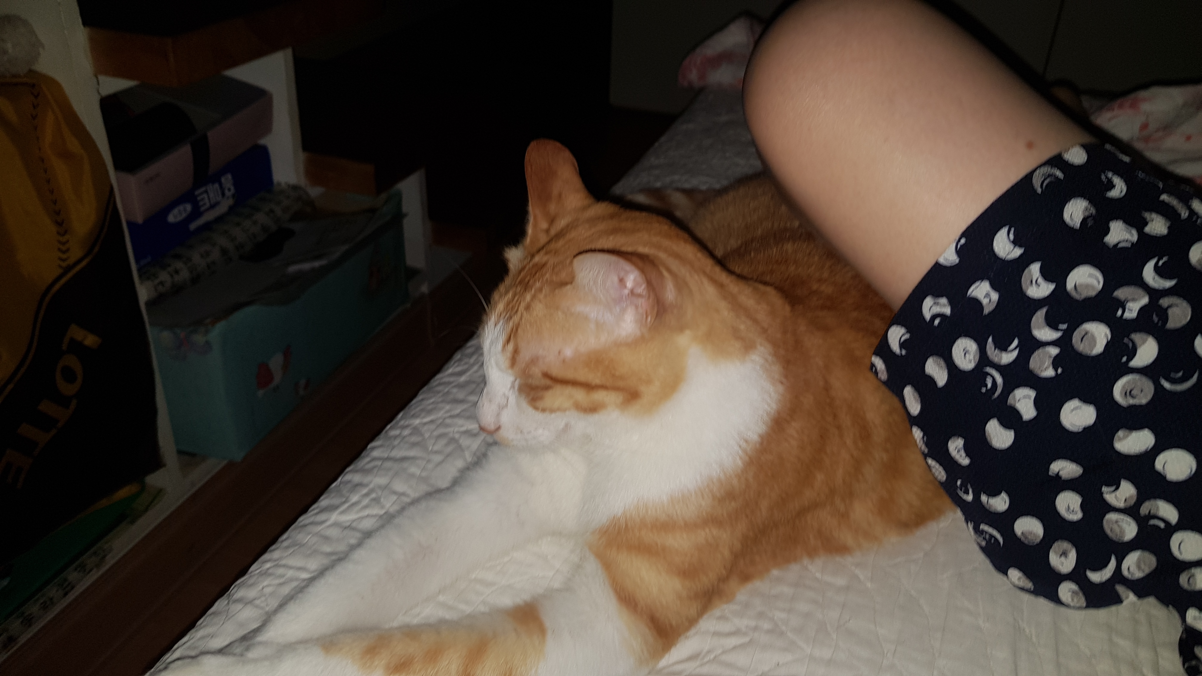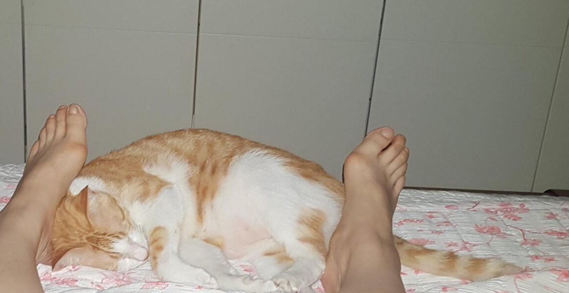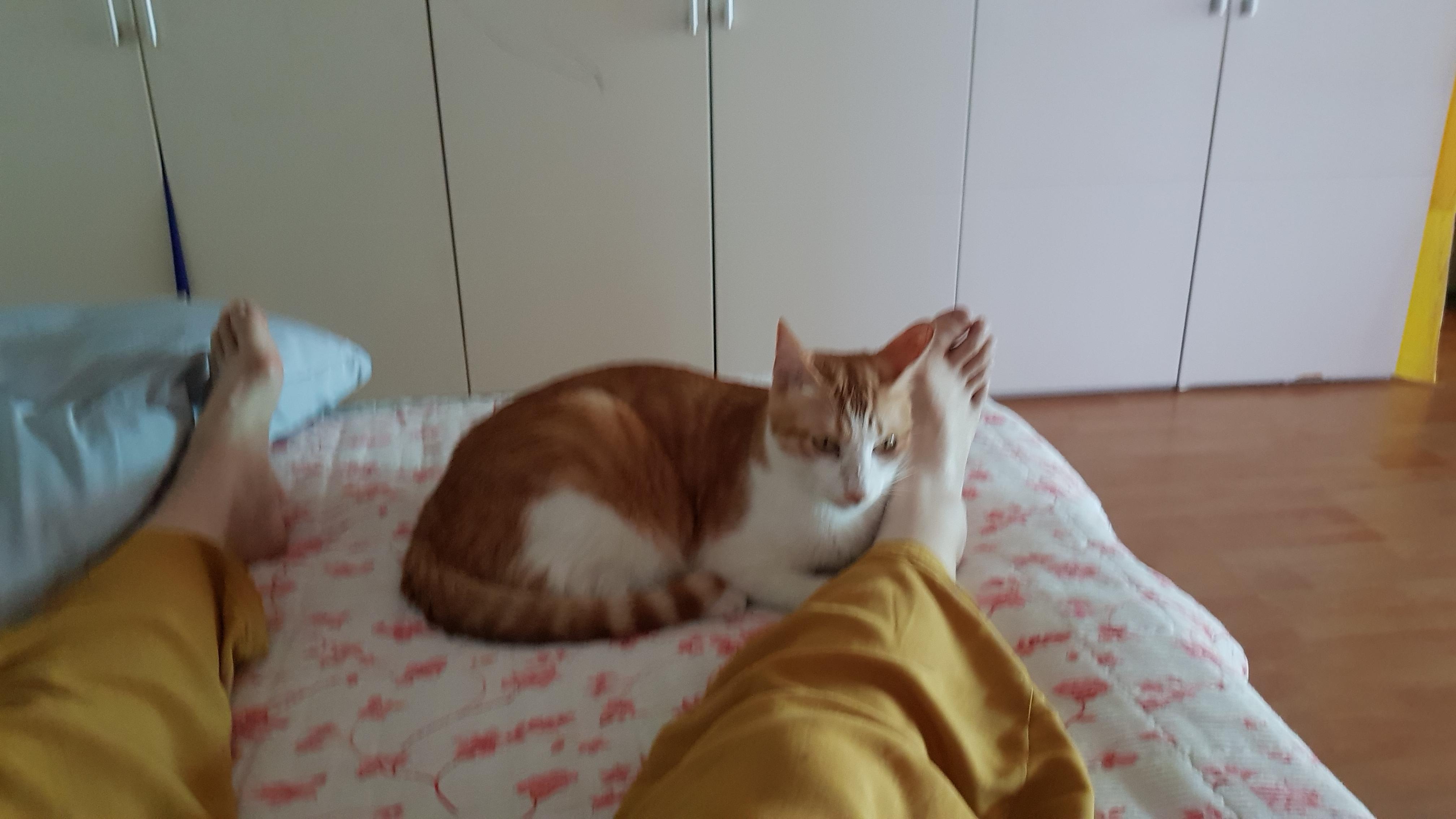 발 밑에 잠들어 있다가 집사가 발을 뻗으면
