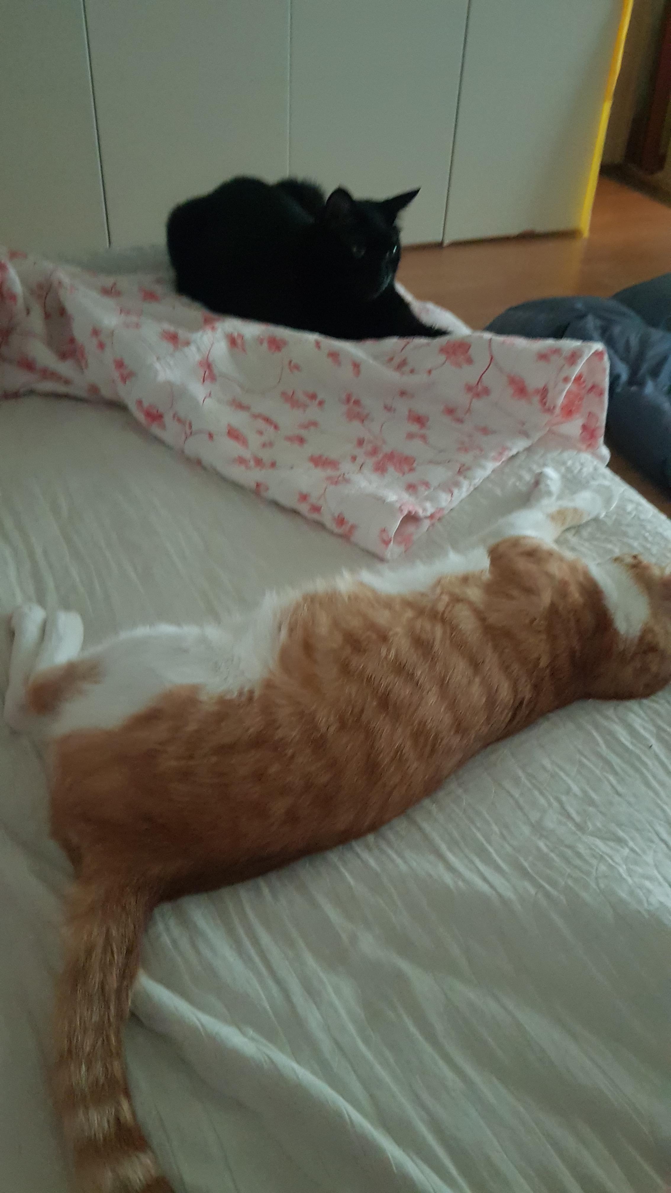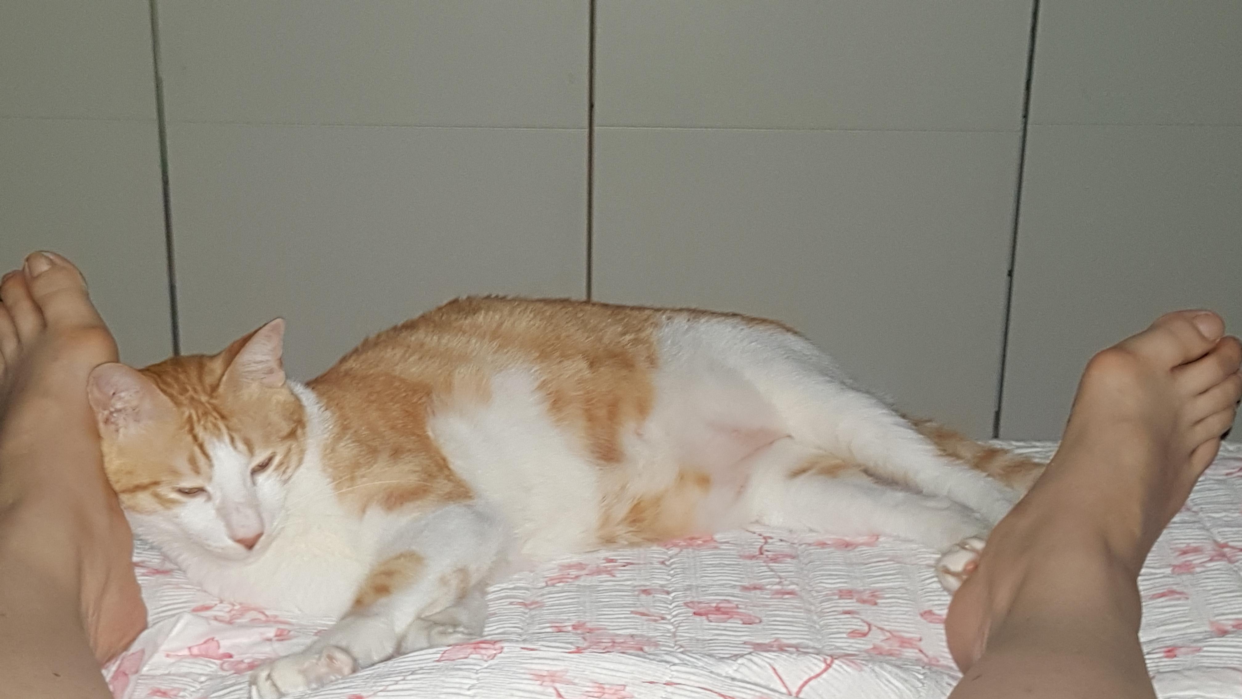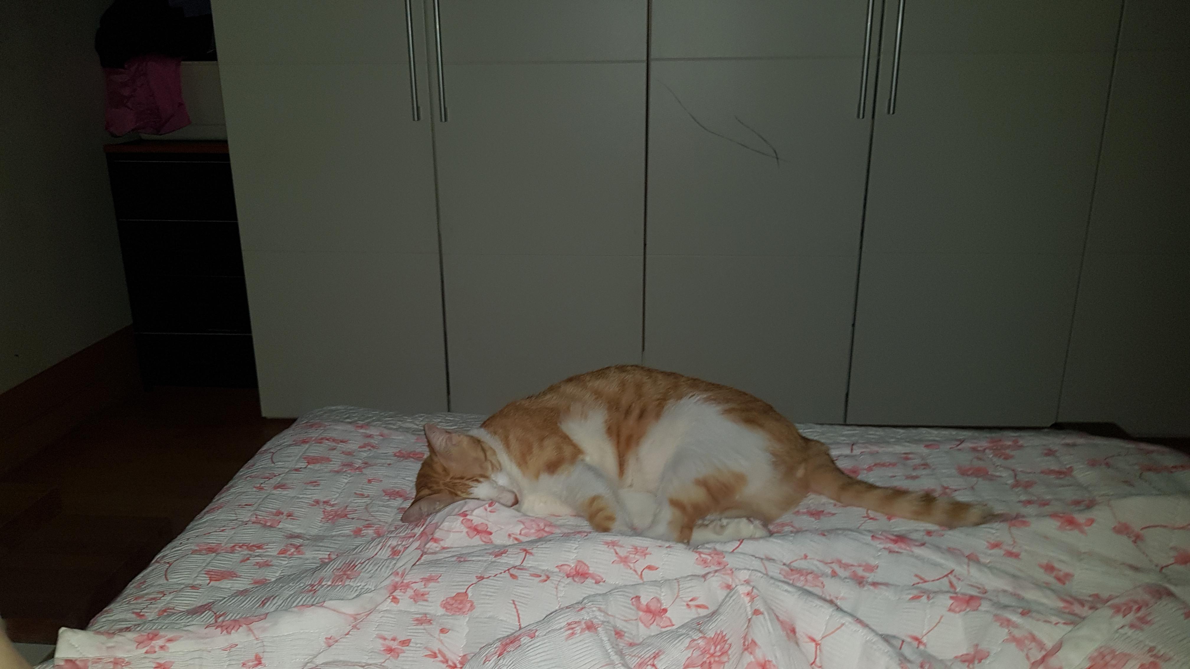 발 밑에 잠들어 있다가 집사가 발을 뻗으면