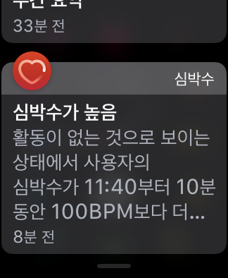 눌러보니 10분간 심박수가 100보다 높다 한다 ㅋㅋ