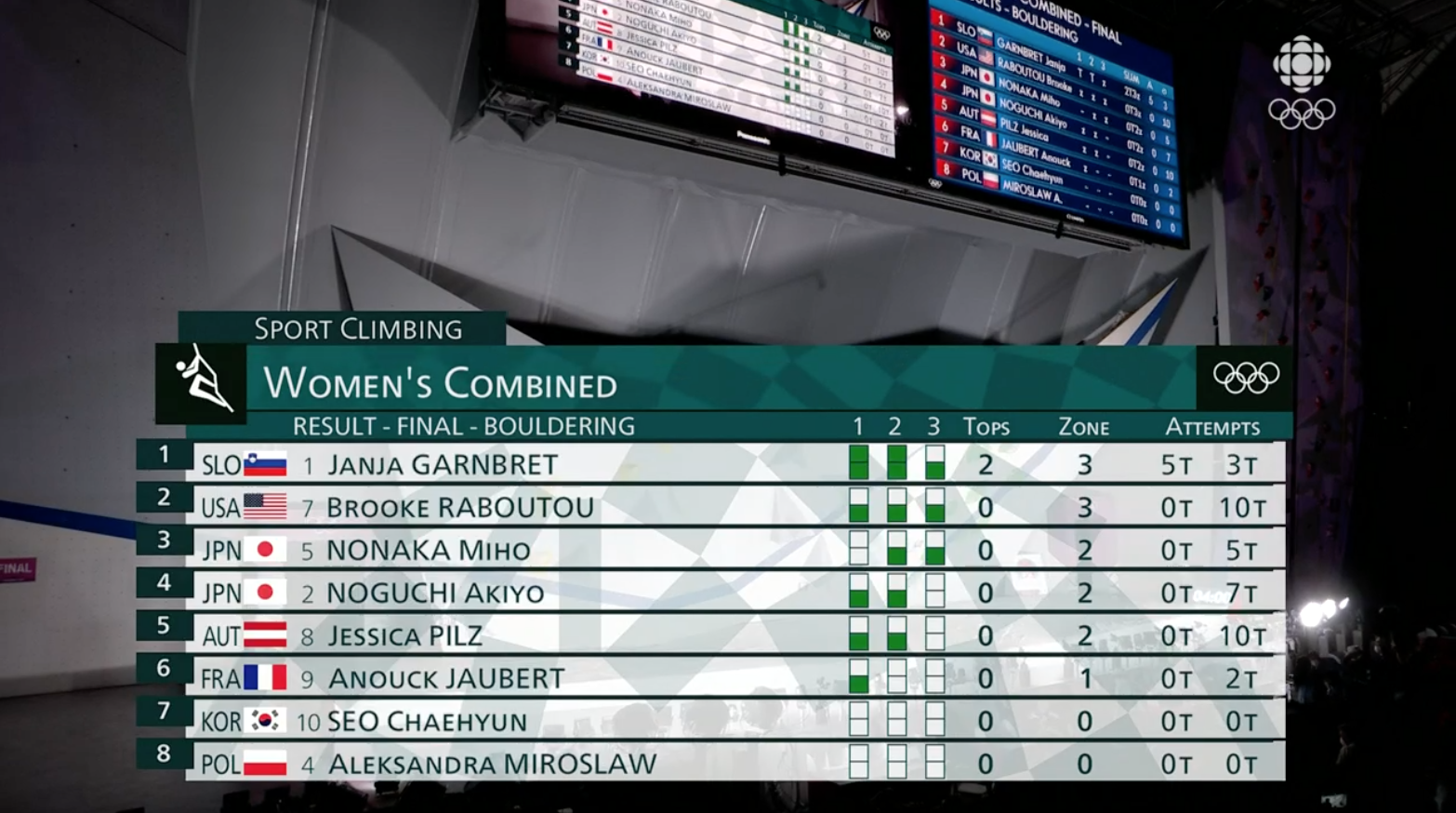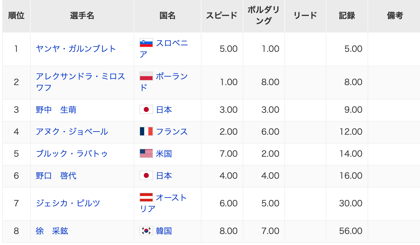 스피드, 볼더링 합산 기록은 56점