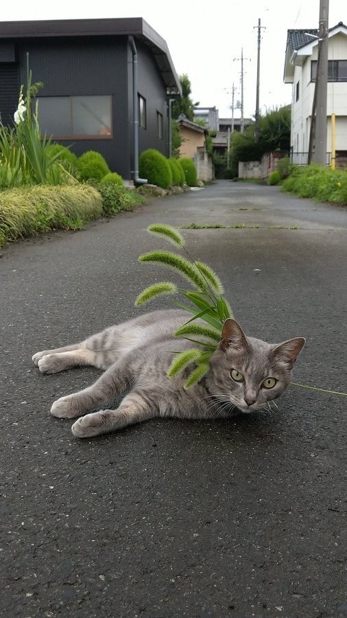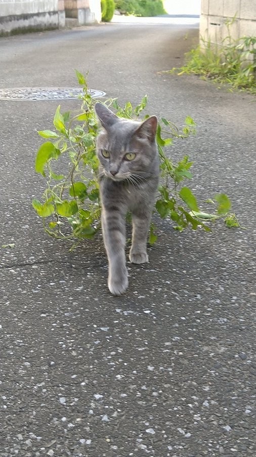 「パリコレモデルみたい」斬新な姿で散歩する猫さん 「くさタイプのねこポケモン!」説に