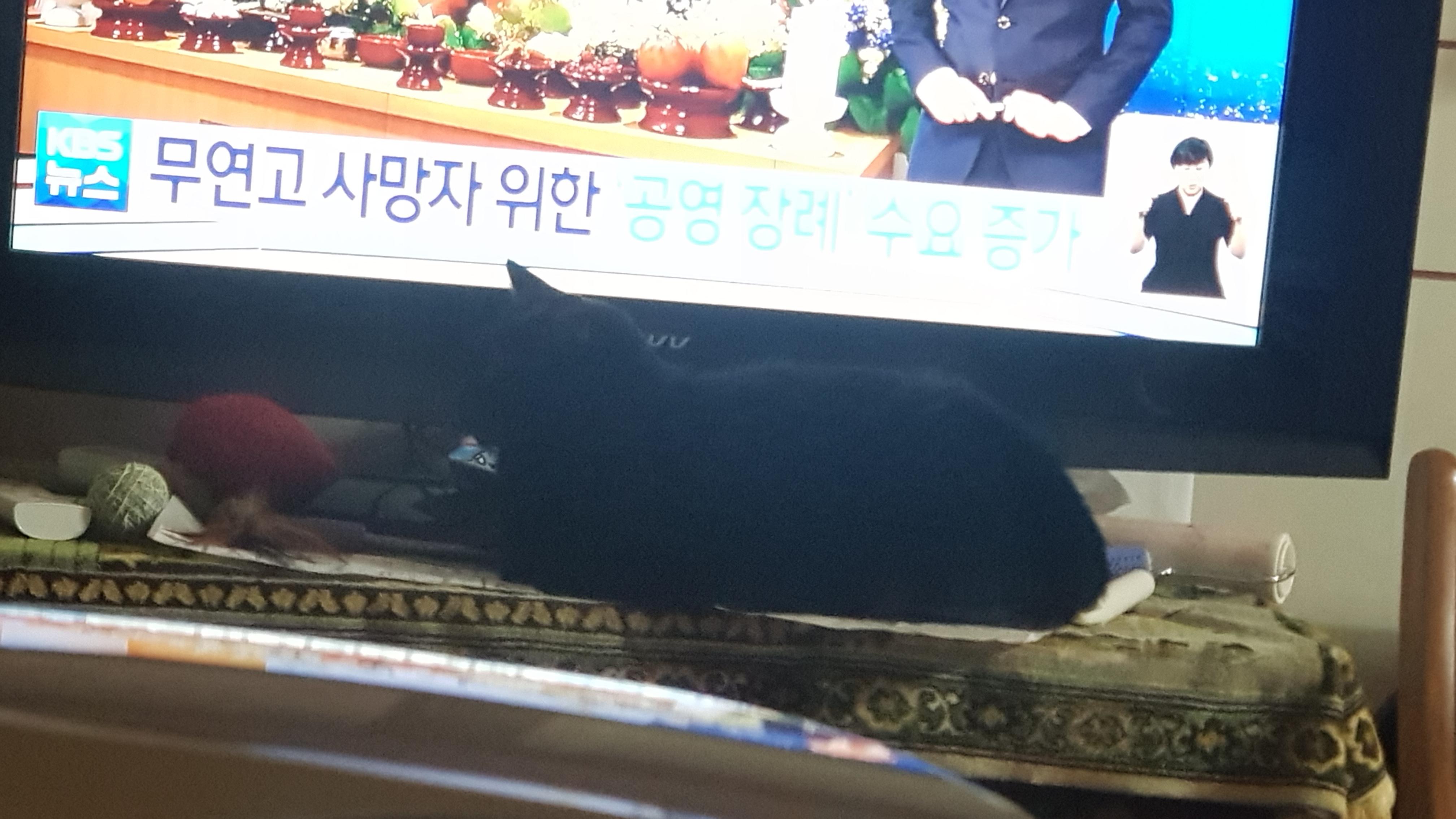 만두는 티비 앞에서 엄마 관심 독차지 중