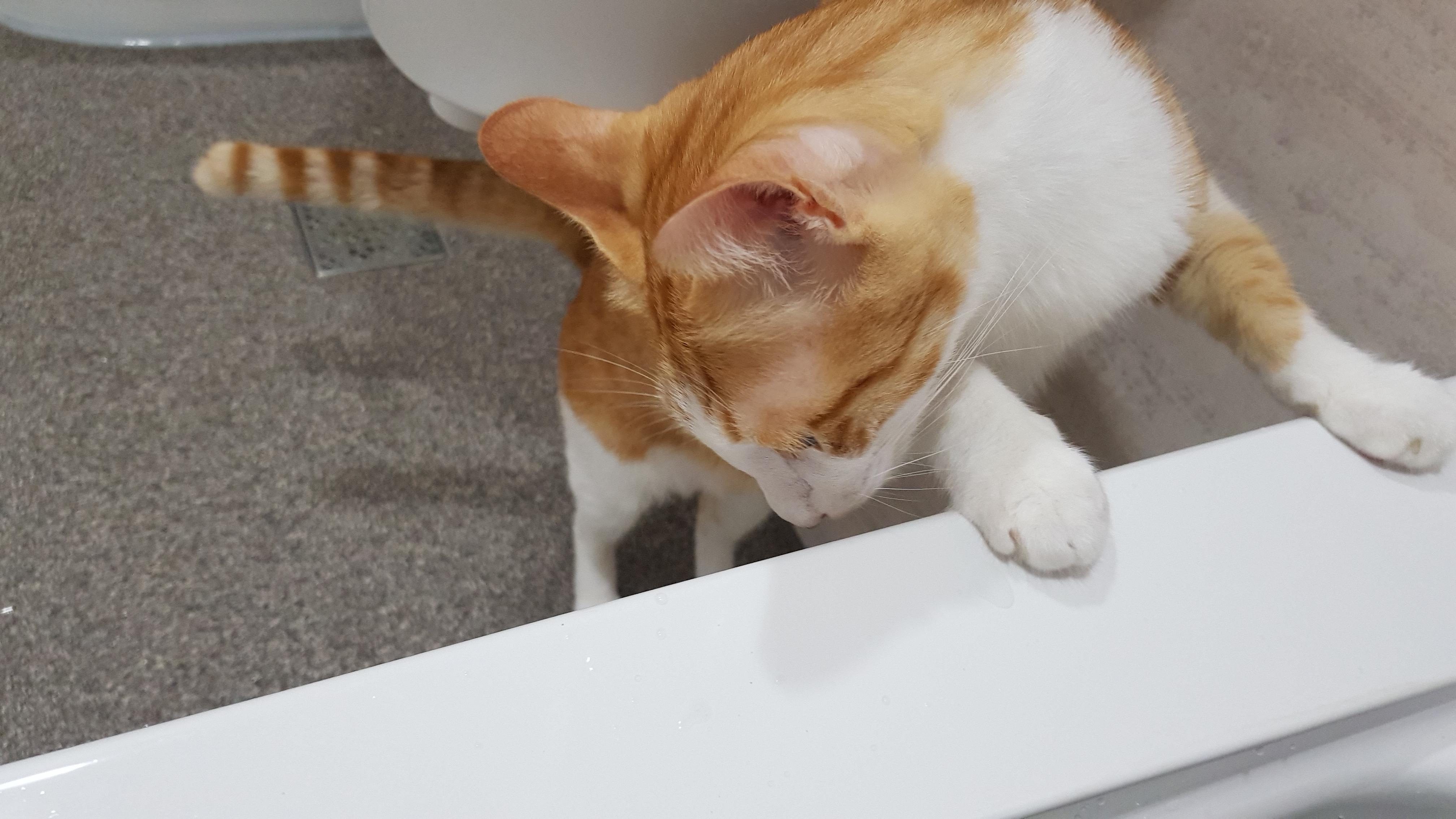 욕조에 들어간 집사를 처음 보고는 걱정이 되는지