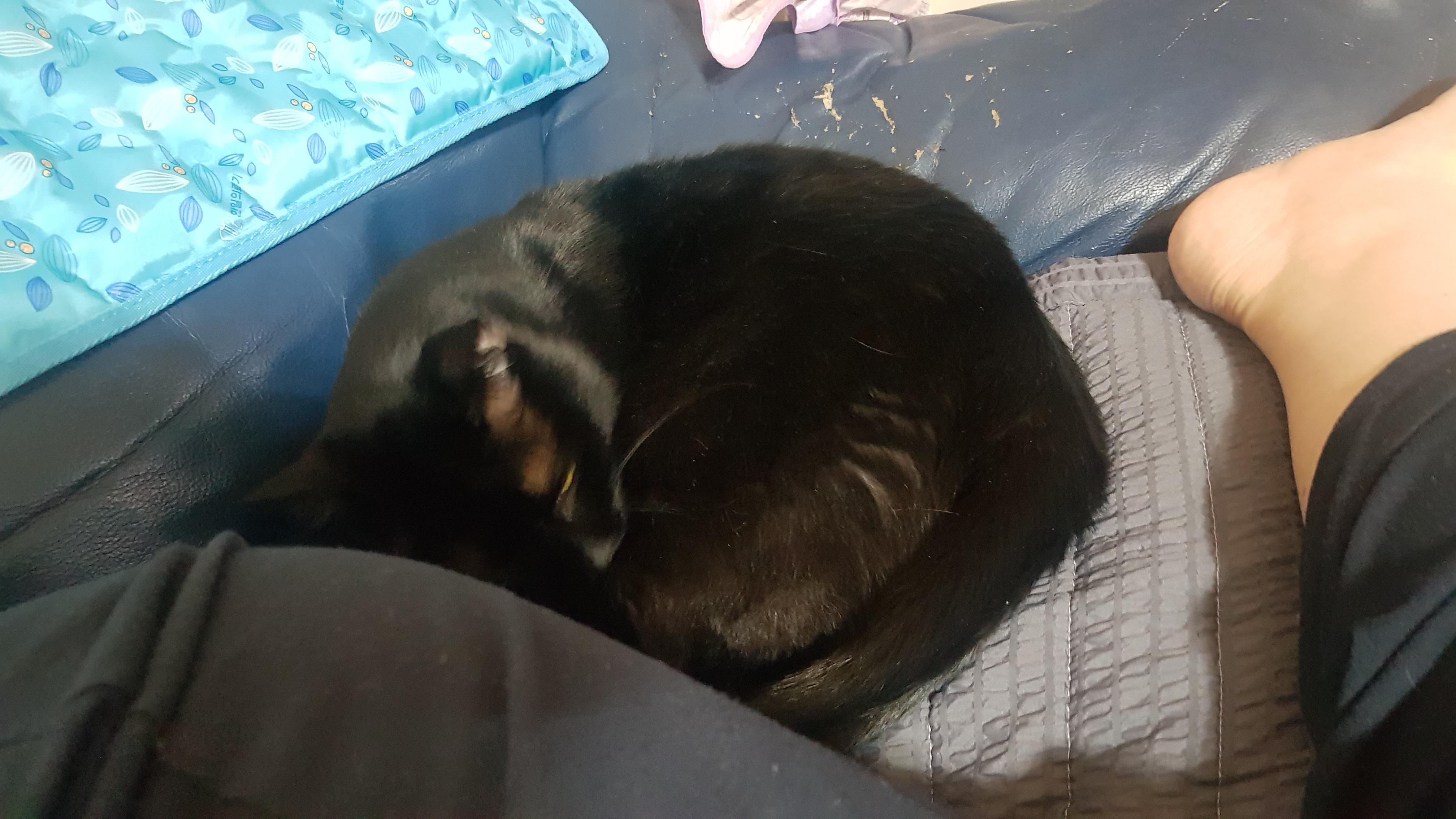 그러나 집사가 나와 누우니 엥큼 와서 다리 사이에 눕기